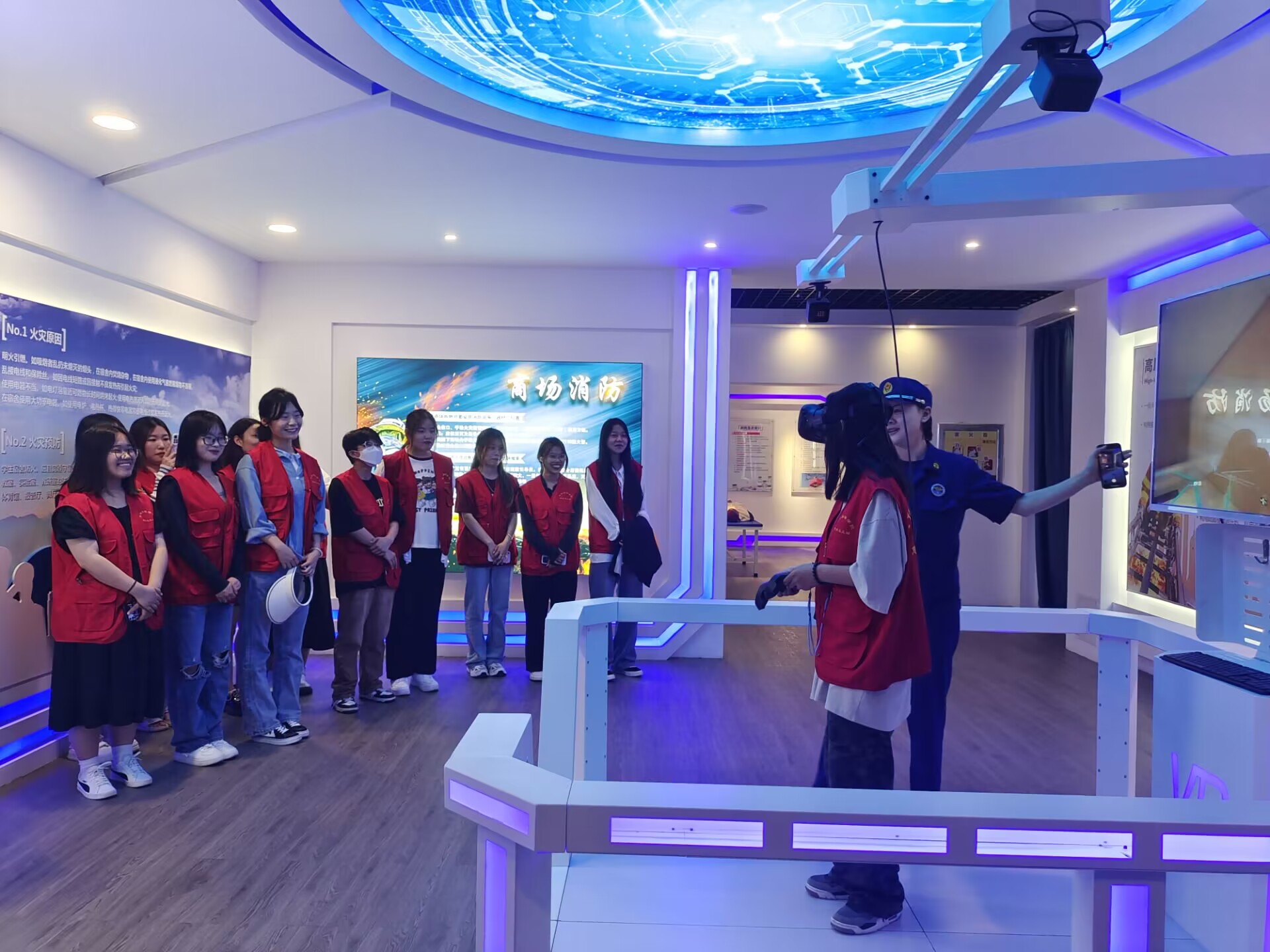 来到消防站,消防宣传员向同学们介绍了消防这一职业的历史由来、预防火灾的措施、消防法律法规等内容,围绕当前校园火灾特点和校园消防安全形势,列举了近期校园火灾事故案例,从认识火灾危害、做好火灾预防、排查火灾隐患等方面进行详细讲解,就如何报火警、火场自救及逃生方法等消防安全常识进行现场答疑。随后,消防宣传员带领学生们参观了消防车库,详细介绍了防护服装及随车装备器材的名称和用途,指导同学们学习穿戴消防服装,体验模拟消防。通过现场倾听、实地参观、亲身体验等多种方式使同学们更直观、更全面地了解消防知识,切实增强了同学们对消防安全的重视。