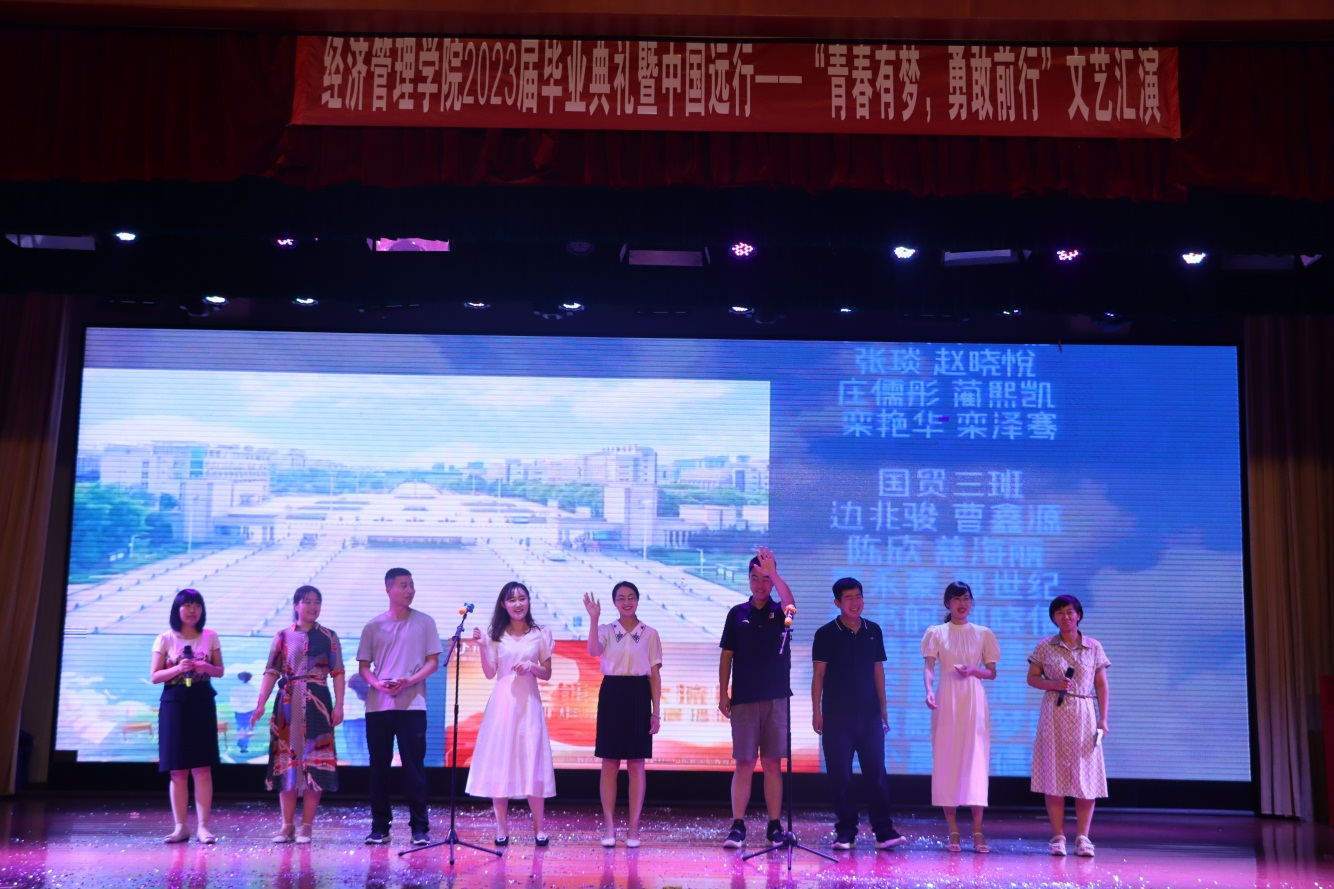 本站讯 7月1日下午,经济管理学院在学校音乐厅举行2023届毕业典礼暨“青春有梦 勇敢前行”文艺汇演,学院党政领导、毕业班辅导员及全体毕业生参加此次活动。
