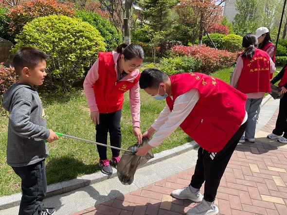 接下来,为了营造更加干净整洁的社区环境,教师党支部的党员志愿者和社区志愿者一起捡垃圾,大到塑料袋,小到烟头,志愿者们不怕脏不怕累,干的热火朝天,一路捡拾废弃物和垃圾,使社区环境换新颜。