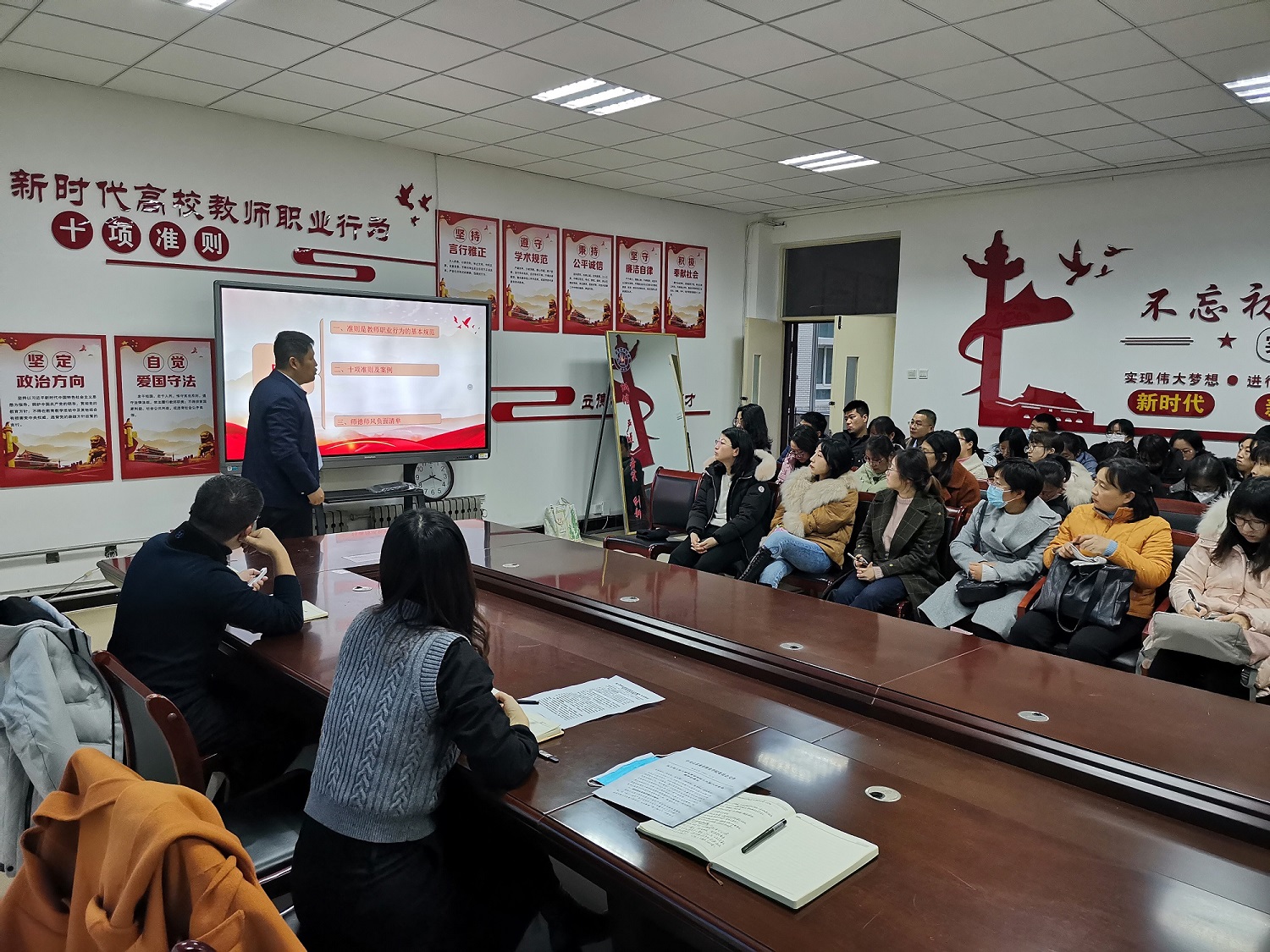 学院党总支书记带领全体教职工学习了《新时代高校教师职业行为十项准则》,并结合《违反教师职业行为十项准则的典型案例》和学校《师德师风建设负面清单》对老师们开展了警示教育。