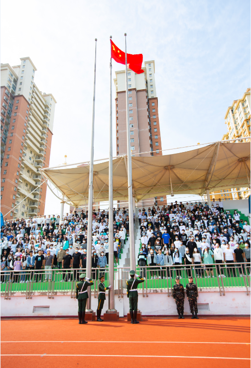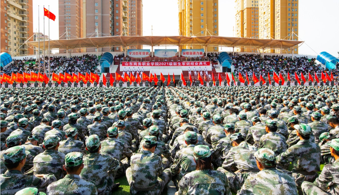 下午1点半,五星红旗伴随着庄严的国歌徐徐升起,军训结业典礼正式拉开帷幕。5900余名2021级的新生们在田径场,以昂扬向上的士气进行分列式阅兵汇演,同学们嘹亮的口号、整齐的步伐彰显出商务学子勇往直前的精神风貌。