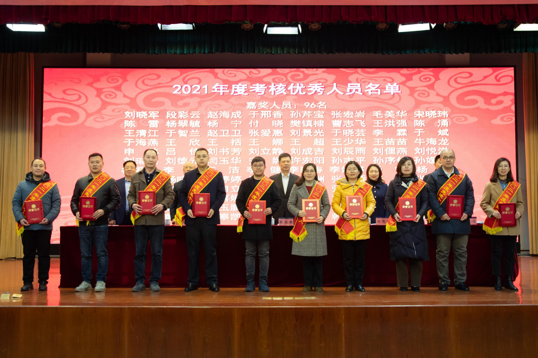本站讯 3月1日下午,我校组织召开2022年工作动员大会。会议深入贯彻习近平新时代中国特色社会主义思想,贯彻落实全省2022年工作动员大会精神,认真总结2021年学校工作,对过去一年为学校高质量发展做出突出贡献的集体和个人进行了表彰,并全面部署2022年学校改革发展的各项任务。学校领导班子成员出席会议,党委书记耿建敏作大会讲话,党委副书记刘艳蔚主持会议。
