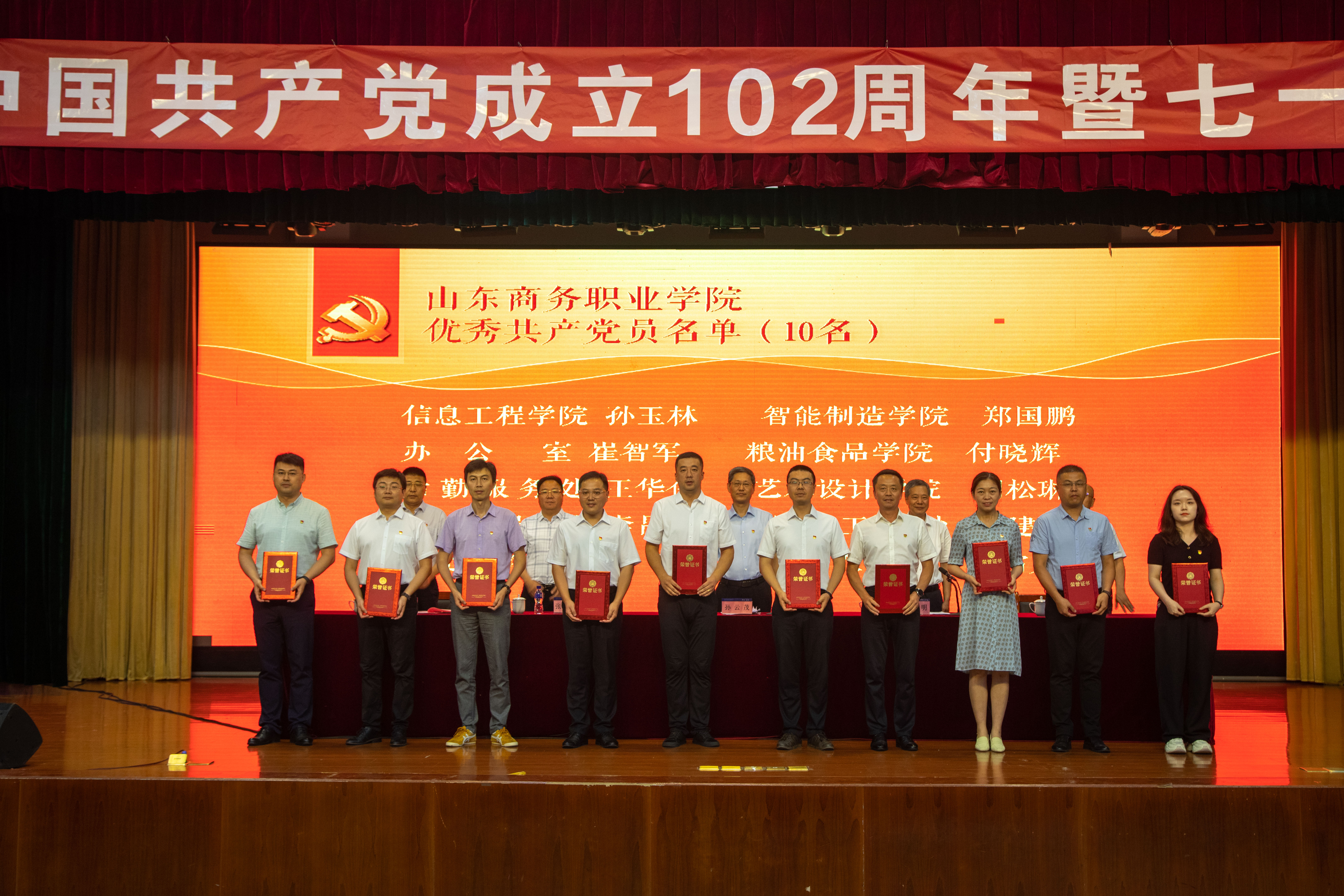 学校领导为“两优一先”获奖集体和个人进行颁奖。获奖人员代表优秀共产党员孙玉林、杨建辉和优秀党务工作者王晓萌作典型发言。