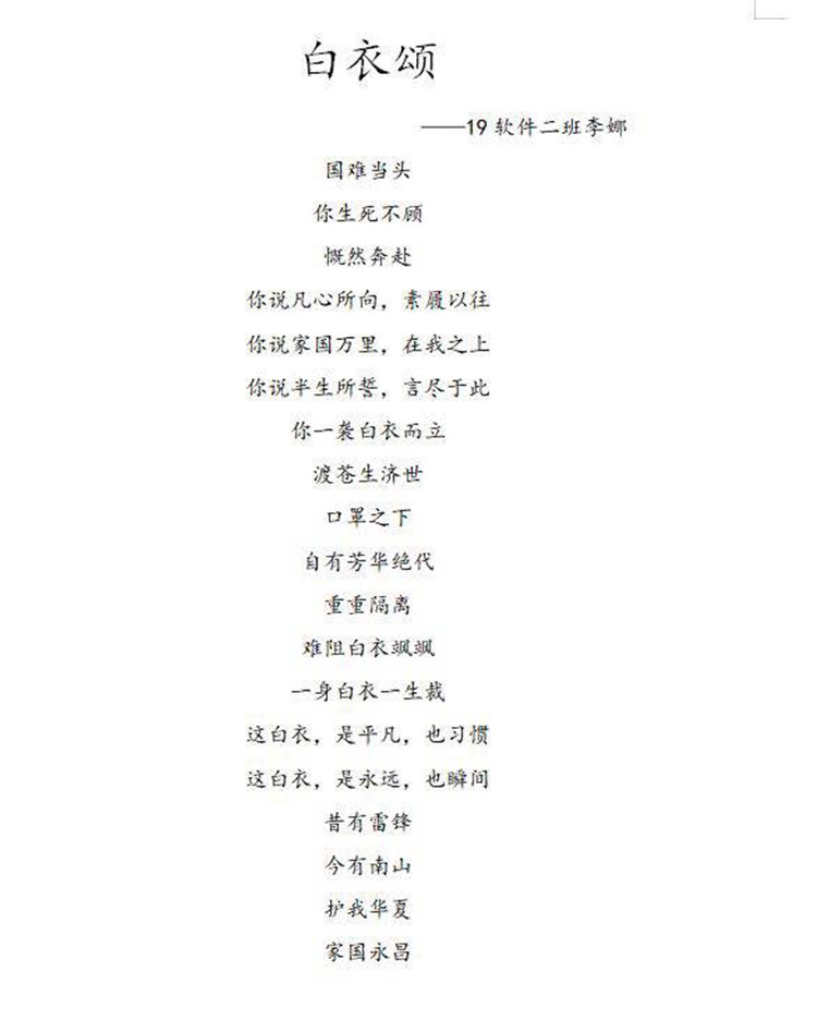 由于受到新冠肺炎疫情的影响,今年的读书节活动也比较特殊,全部采用线上方式进行,于4月23日启动,6月11日结束。读书节的活动也是特殊时期特别设计,首先突出”静”的特点,如阅读马拉松挑战赛需要参与者连续21天不间断阅读打卡,这就需要参与者一定要摒弃浮躁,静下心来阅读;诗歌创作大赛,书画大赛,观书有感等活动,无一不需要参与者静下心来创作,才能创作出优秀的有内涵的作品。通过参与者提交的阅读心得和疫情期间的感悟,我们不难看出参与者因静心阅读和创作而带来的内心治愈性的抚慰。其次,读者节活动还突出了“疫”的特点,如本届读书节主题为'’书’途同归,’疫’往无前”,是希望疫情早日过去,学子们早日回归校园;各项活动也都着重强调要歌颂抗疫英雄,结合新冠肺炎疫情发表感想,以此来激发大学生的爱国热情,增强抗疫胜利的信心以及责任感。活动中,同学们不仅参与热情高涨,作品亦是精彩纷呈。“战疫”系列绘画让人叹为观止,19电气一班刘昌燕创作的古体词,以及19软件二班的李娜等多位同学创作的战疫主题诗篇,展现出了深厚的文学创作功底。