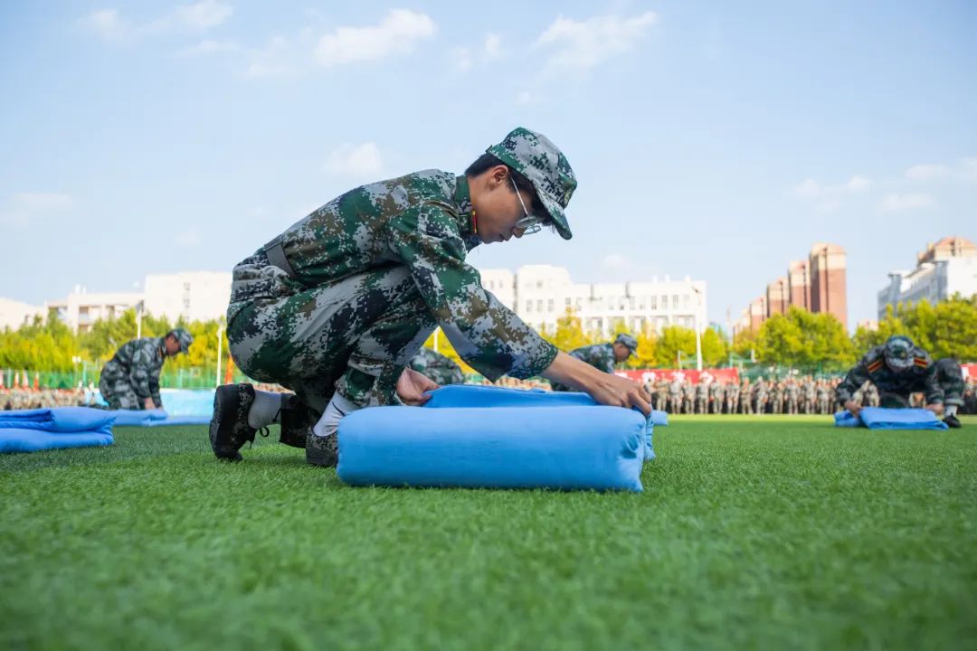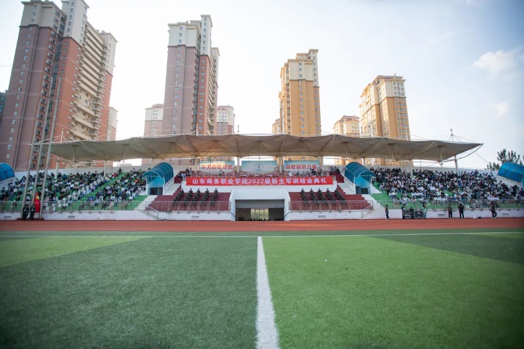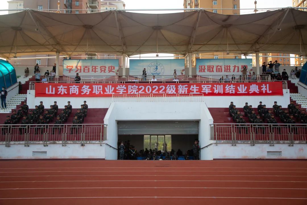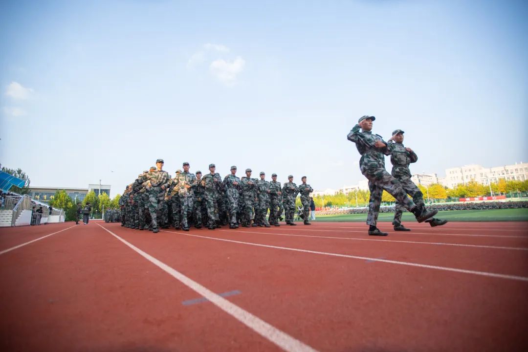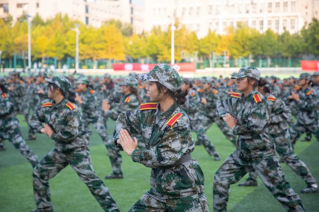 12个分列式方队迈着坚定的步伐、喊着嘹亮的口号,昂首挺胸,率先从主席台走过。分列式之后,依次进行了“山东商务” “欢度国庆” “喜迎二十大”字体方阵展示,军体拳、刺杀操、速叠军被、匕首操等汇报表演,气势恢宏的表演赢得了全场师生的掌声,展示出商务学子朝气蓬勃、昂扬向上的精神风貌。