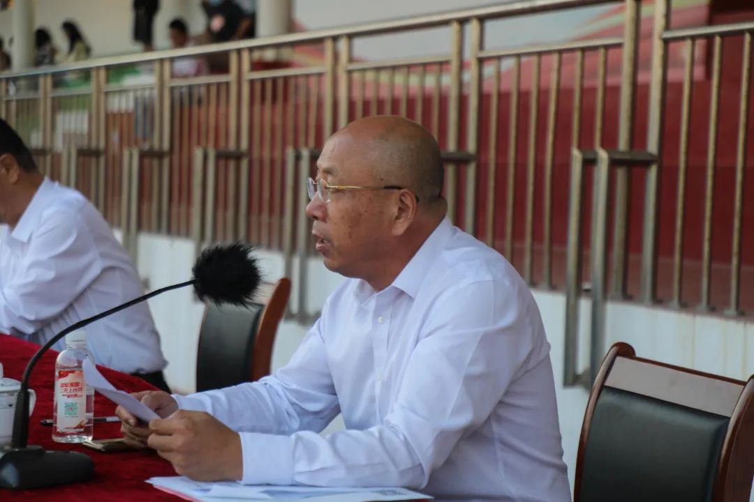 本站讯  9月29日下午,2022级新生军训结业典礼在田径场举行。学校党委书记耿建敏,副校长陶传蔚,副校长张云生,二级学院党政领导、辅导员老师,各有关处室干部职工,军训团各营长、各连长,2022级全体新生及老生代表共同见证了本次军训结业典礼的庄严时刻。