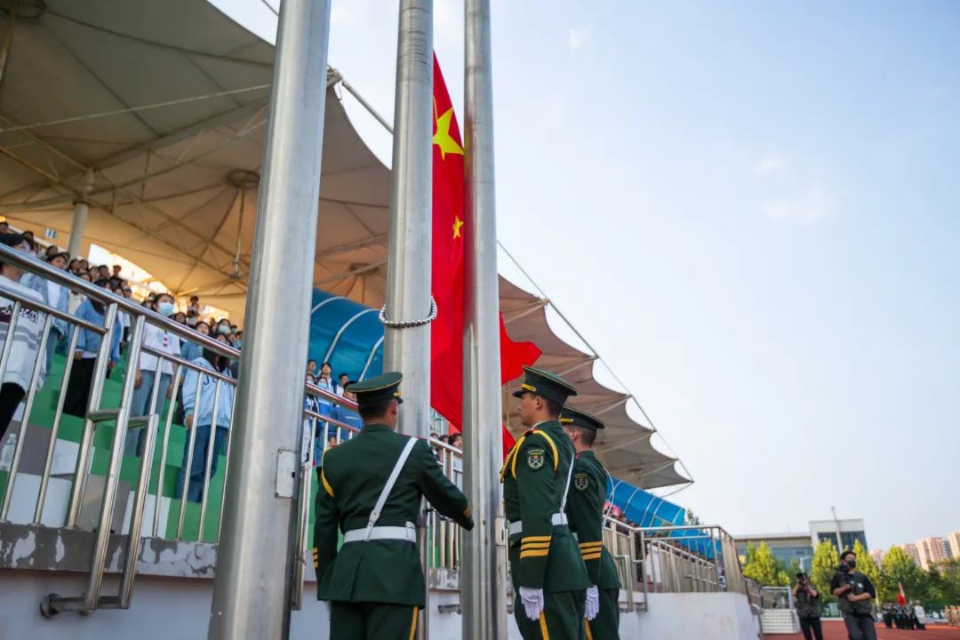 伴随着庄严的国歌声,2022级新生军训结业典礼正式拉开帷幕。