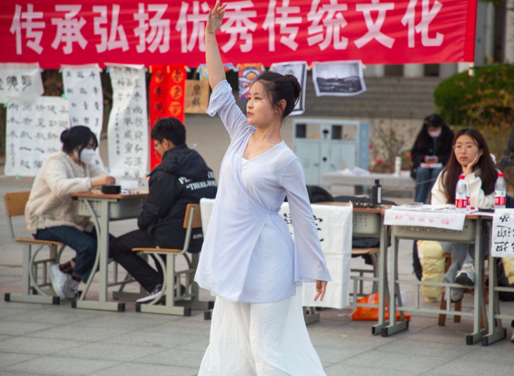 在龙腾虎跃鼓乐团的鼓声中,学生社团的联合展演拉开了本次活动的帷幕。民族传统体育社的舞狮和武术表演迎来阵阵喝彩,汉服社的《怎叹》展现了汉服和民族舞蹈之美,国学社的《短歌行》、吟诵社的《苏幕遮》展示了吟诵的魅力。
