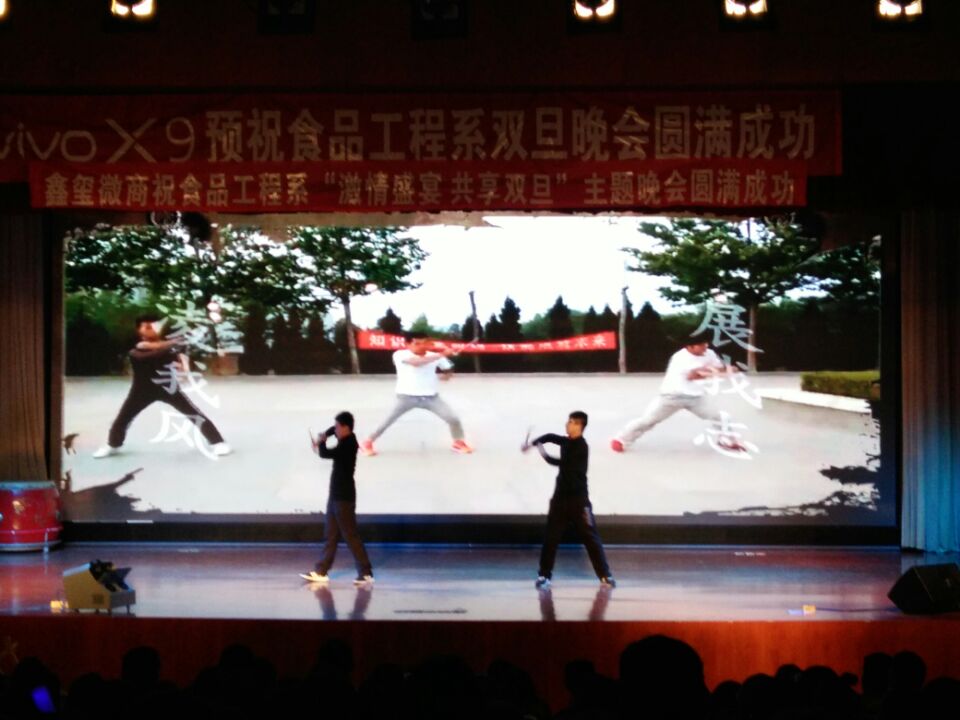 元旦是一年的起点,快乐则是人生的重点,伴随着一段精彩的开场舞,晚会正式开始。同学们用自己精心准备的节目表达了对美好生活的向往和对老师辛勤付出的感激之情。劳卫部的非诚勿扰、女生部的印度舞、生活部的good boy、宣传部的uptown funk 、组织部的worth it等等,还有幽默的小品《总监驾到》、《吃面》等一大批优秀文娱节目激情上演。精彩的节目使整个会场气氛激扬澎湃、掌声连连、笑声不断,此外,各部长带来了歌曲串烧,舞蹈串烧,让我们看到了他们的另一面。历时3个多小时的晚会在同学们意犹未尽的喝彩声中完美落幕。(杨红霞)