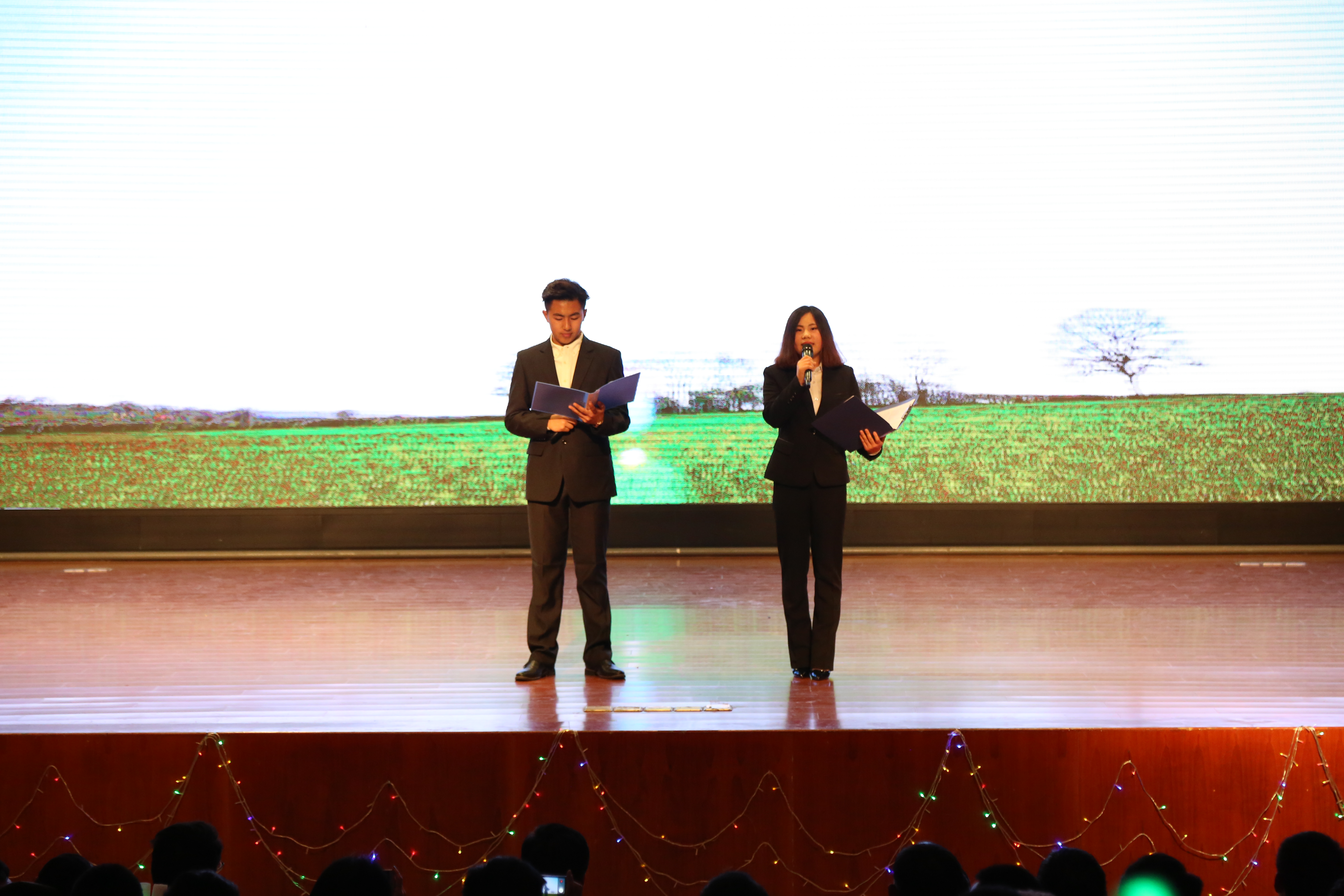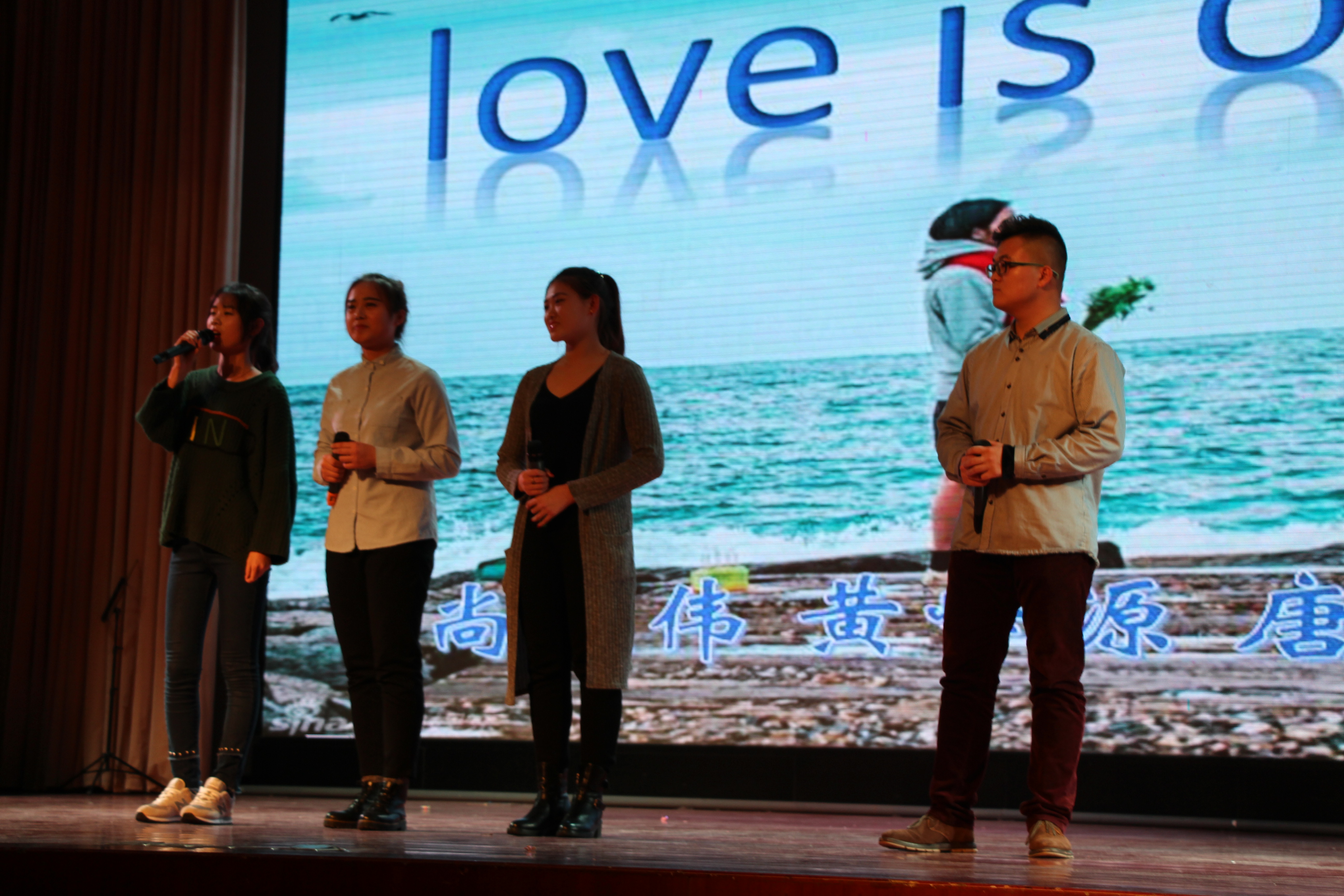 韩语外教悠扬的小提琴声拉开了整场晚会的帷幕。商务外语系党总支书记王治玲老师发表了新年祝福,对商务外语系过去一年做出了总结,对商务外语系新的一年表达了祝福。随后,同学们精心准备的节目轮番登台演出,节目有舞蹈、歌曲、小品、相声等多种多样的表演。低沉却又饱含深情的歌曲《蓝旗袍》与风趣幽默、独具特色的流行歌《蓝莲花》形成鲜明对比,给观众造成了极大的听觉冲击。舞念舞蹈《舞法舞天》以双人舞和团体舞《TT》以不同形式向观众展示了似火青春的激情与活力。小品《我要上春晚》在同学滑稽有趣的语言和动作中表现得淋漓尽致,令人捧腹。相声表演《我的青春》以诙谐幽默的语言与丰富多变的表情讲述了进去大学后对爱情、对学习的追求以及这一过程中的苦与乐。抽奖和送礼品环节更是将气氛推向一个有一个高潮。一首《再遇见》让这次活动接近尾声,最后在一首《WeWishYou aMerry Christmas》中,晚会圆满结束。(李蓉)