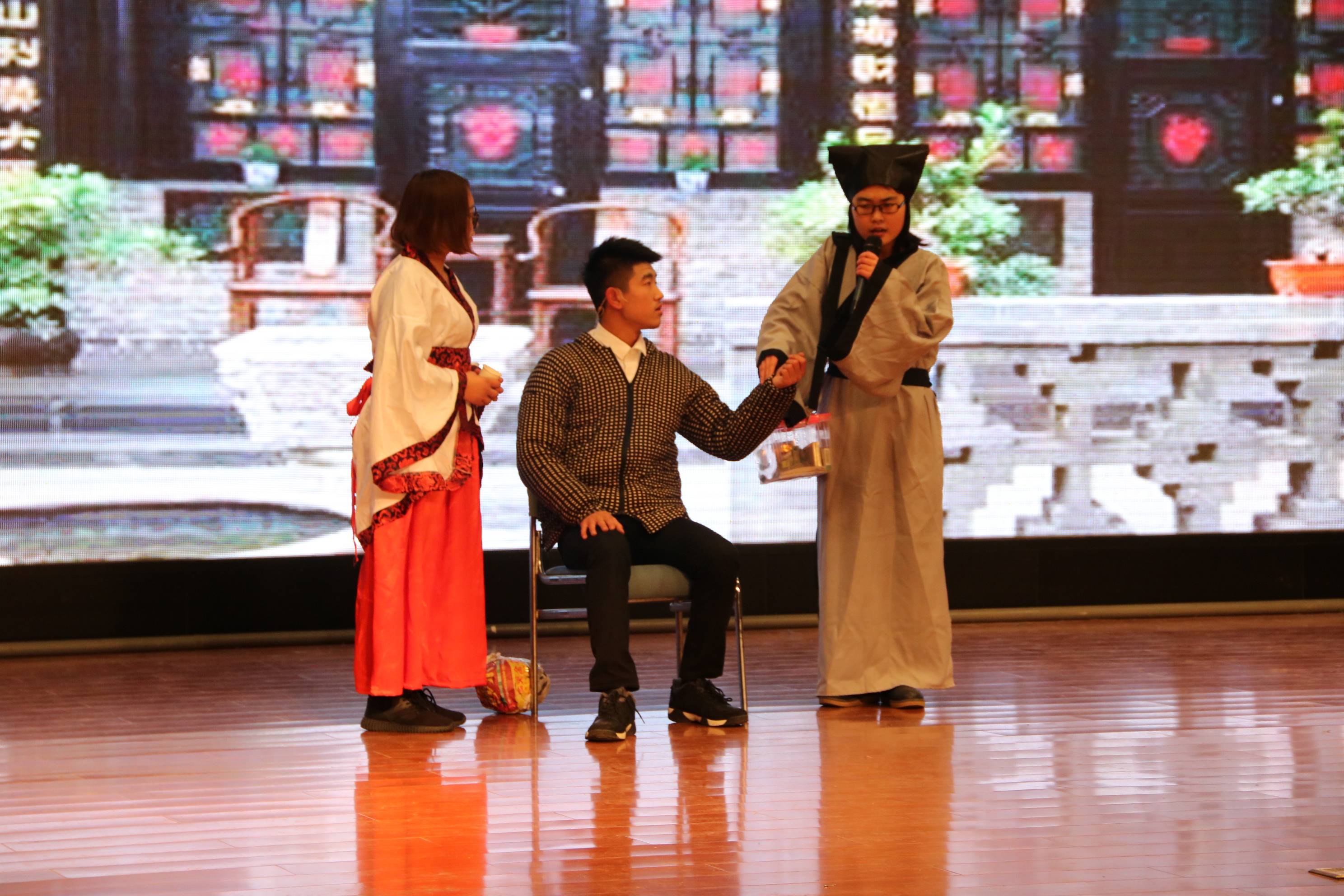 晚会开始前大屏幕上播放了同学们精心制作的小咖秀,同时也对在场的情侣分发了平安果,在平安之夜给予大家最温暖的祝福,点燃了现场的气氛。随后,一场激昂热烈的打鼓表演为本次晚会拉开了帷幕,整场晚会经典与流行并存,热烈与温暖同在,形式多样,精彩纷呈,歌曲串烧《友情岁月》、《夏天的风》、《过火》等轮番上阵,或活泼动感,或浪漫温馨,或轻快悠扬,风格各异,变幻多姿。各种舞蹈节目花样繁多,有优美高雅的华尔兹,热辣十足的拉丁爵士串烧,新奇有趣的自编舞蹈《放纵》,让观众们大饱眼福,欢呼喝彩声不断。还有逗人发笑,创意十足的小品,让大家捧腹大笑。此外,此次晚会还在节目中穿插了摇奖、抢红包和互动游戏,让同学们参与到了此次晚会中来。尾声时,以一首经典的青苹果乐园作为此次晚会的压轴,歌手们下台与同学们的互动将此次晚会推向了高潮。(刘丽)
