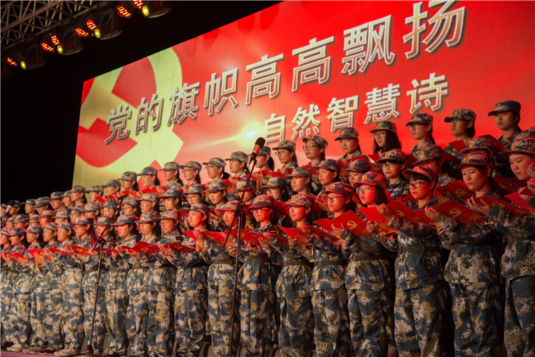 9月14日,山东商务职业学院中心大道一片欢乐的海洋,学校领导、社会各界嘉宾和2017级新生6000余人欢聚一堂,共同观看2017级迎新生联欢晚会“喜迎十九大,青春梦飞扬”。晚会现场,龙腾虎跃鼓乐团《盛世锣鼓》、独唱《好儿好女好江山》、舞蹈《年年有余》、集体朗诵《少年中国说》、烟台人民广播电台主持人刘丽老师和103位新生的倾情诵读诗《党的旗帜高高飘扬》、男女二重唱《共筑中国梦》等精彩主题节目轮番上演,为观众送上缤纷多彩的欢乐大餐,带来深深震撼与自豪感动,唱响了时代主旋律,展现了商务儿女斗志昂扬喜迎十九大,同走复兴路共筑中国梦的喜悦期盼之情。“党的十八大以来,我们真切感受到国强民富,风清气正,心中满满幸福感,我们永远心向党中央,在未来的五年我们要撸起袖子加油干,把我们的祖国建设的更加美好。”晚会现场一位教师激动说到。