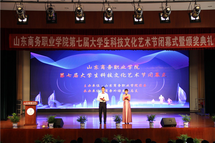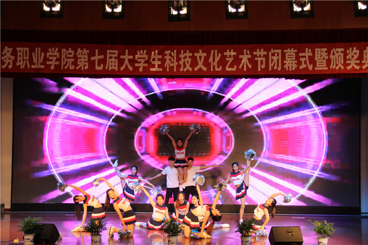 本次闭幕式由校团委主办,商务外语系承办。整场文艺演出精彩纷呈,本届科技文化艺术节中涌现出的优秀作品在闭幕式上进行展演。经济管理系同学们带来的健美操《快乐崇拜》活力四射,展现了朝气蓬勃的青春风采,商务外语系英外语类社团同学们表演了《外文歌曲联唱》,展现了不同语言相互融合的独特魅力。诗朗诵《厉害了,我的国》气势豪迈,饱含真情,表达了我校师生对祖国的深沉热爱和美好祝愿。由汉服社和商务外语系礼仪队共同表演的舞蹈《礼仪之邦》,将古代礼仪和现代商务礼仪完美融合,展现了中华礼仪之邦泱泱风采。机电工程系的同学们将他们制做的机器人、激光雕刻作品等带到舞台上进行展示,获得了全场师生热烈的掌声鼓励。晚会在大合唱《新的天地》中落下帷幕,“我们自信,我们前行,看中华儿女走向新的天地”,唱出了师生们的豪迈情怀。