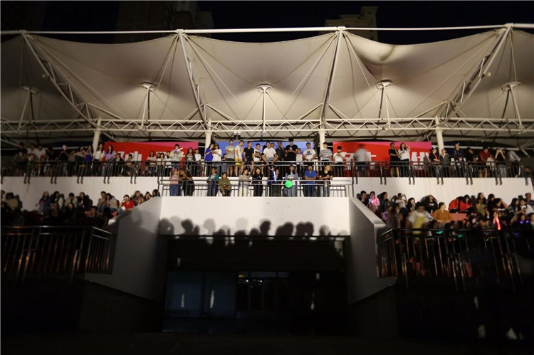 本站讯 夏日夜幕下的静谧校园,被移动着的炫彩荧光和欢声笑语嗨翻。一群快乐的青春精灵,身上佩戴闪闪发光的手链、发箍、发卡、戒指,奔跑在周末的校园内,炫丽荧光点亮美丽校园。