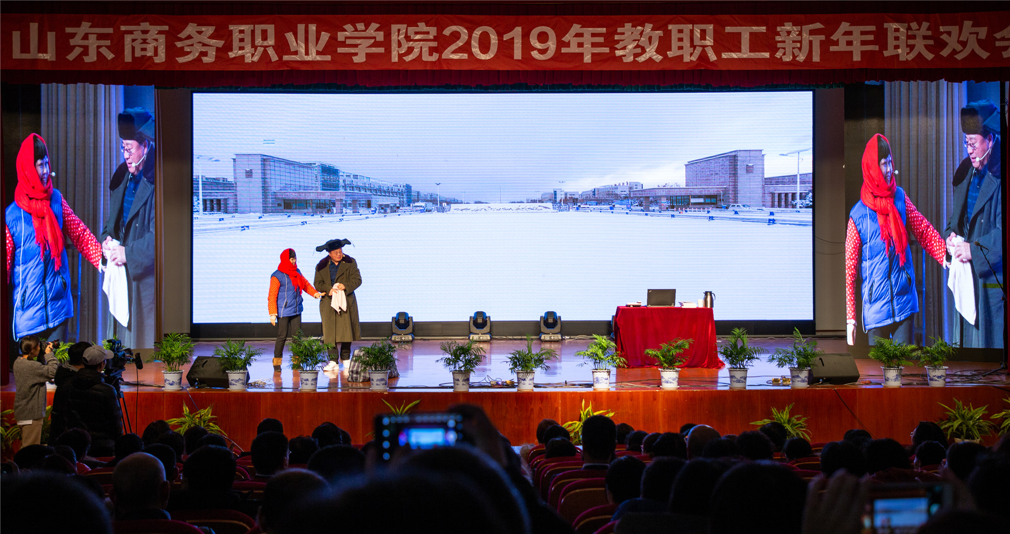 掌声、欢笑声此起彼伏,音乐声、歌声交相辉映,喜辞旧岁,笑迎新春。12月27日14:30分,我校隆重举行了主题为“风雨同舟筑梦路,同心同向同未来”2019年教职工新年联欢会。全体教职工一起观看了本次精彩的演出。大家欢聚一堂,辞旧迎新。