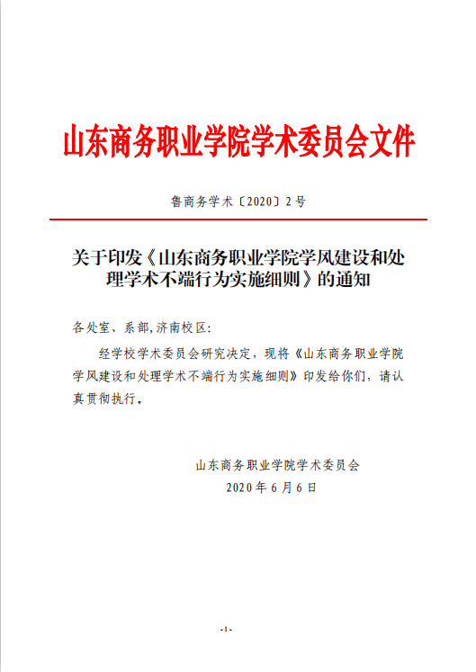 本站讯 近日,经学校第三届学术委员会审议通过的《山东商务职业学院学术委员会议事规则》《山东商务职业学院学风建设和处理学术不端行为实施细则》正式印发。