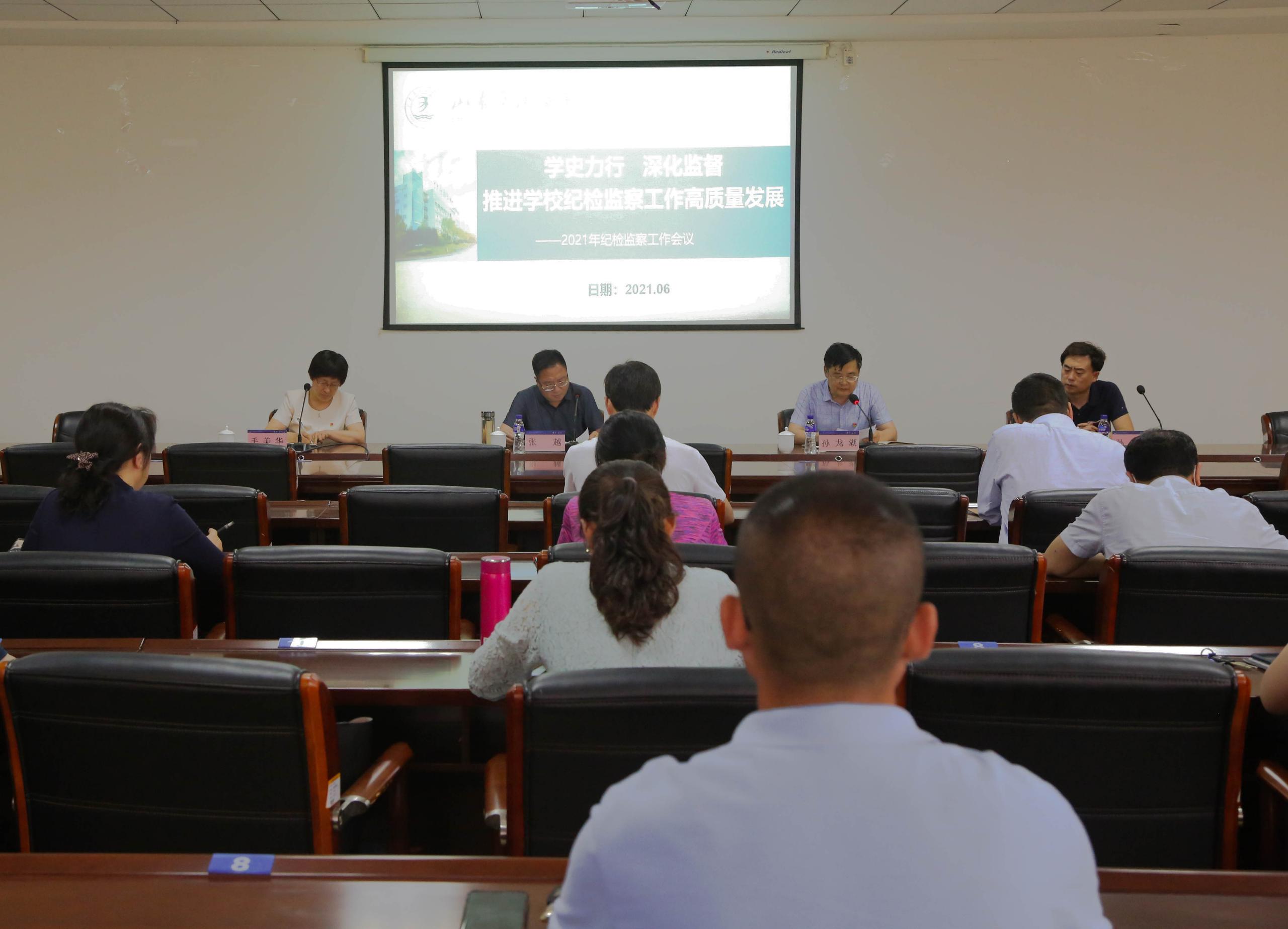 本站讯 6月10日,我校在学习中心召开纪检工作会议。纪委书记张越出席并讲话。学校纪委委员,各党总支(支部)书记、纪检委员,纪检监察室全体人员参加会议。