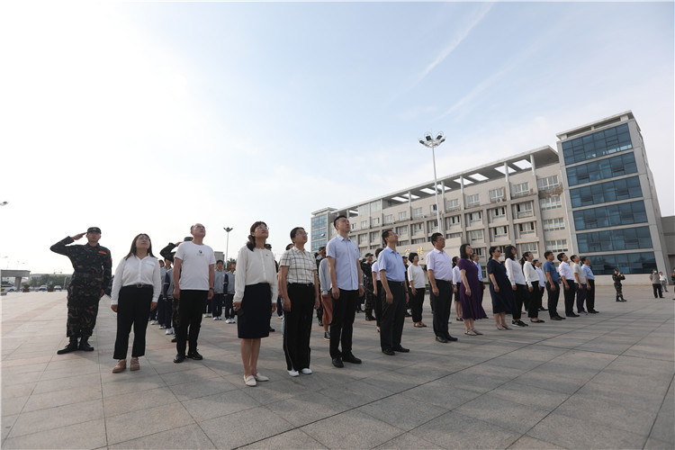 7点30分,升旗仪式正式开始。参加人员着装整齐,列队肃立。国旗护卫队成员身着笔挺礼服、肩披金黄绶带,紧握钢枪、英姿飒爽,迈着整齐的步伐向国旗杆走来。伴随着雄壮的《义勇军进行曲》,鲜艳的五星红旗缓缓升起,迎风飘扬。全体人员向五星红旗行注目礼,向伟大祖国致敬。