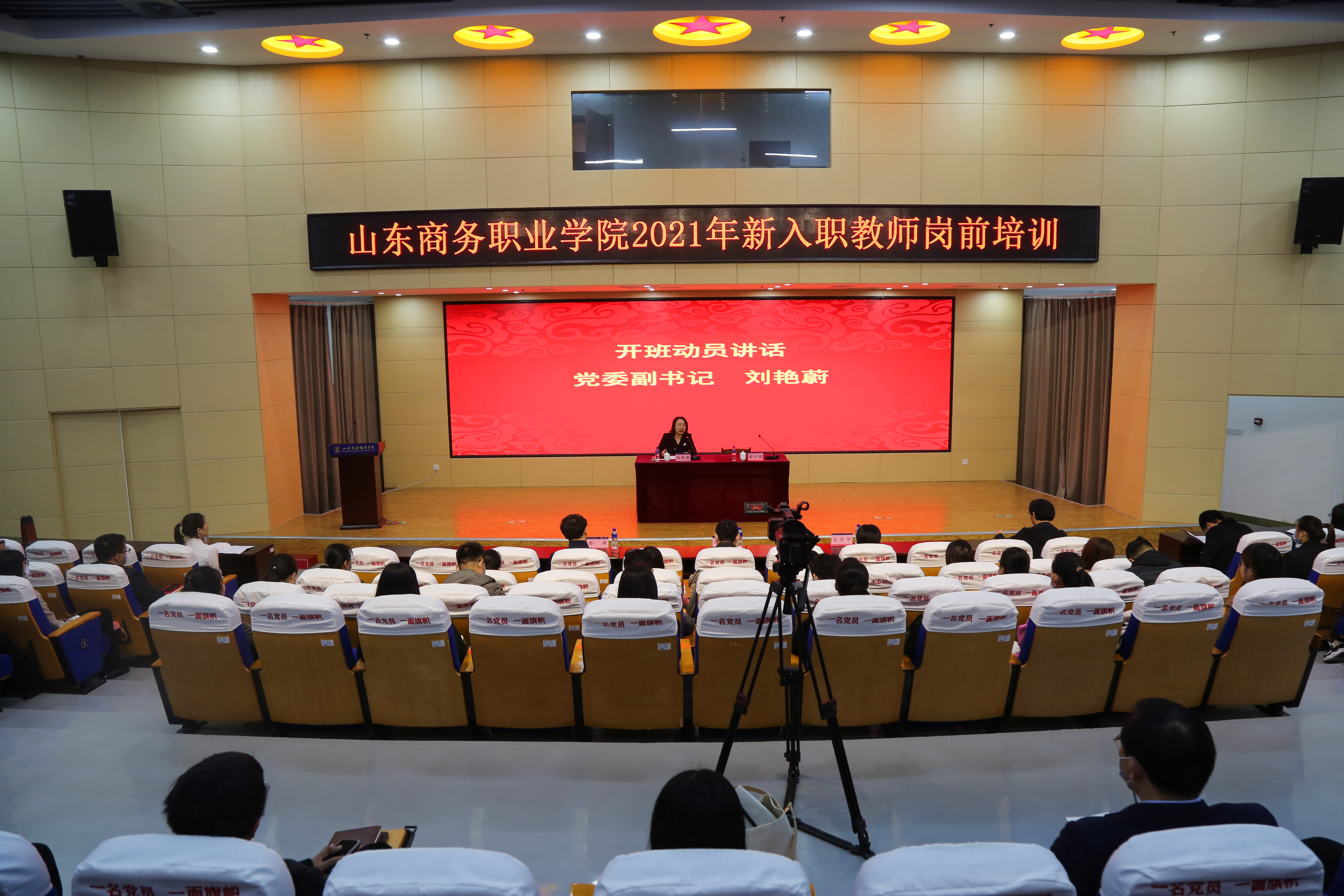 刘艳蔚代表学校对新教师表示热烈欢迎,介绍了学校发展历程,分析了职业教育发展形势,结合学校“十四五”发展规划和二O三五年远景目标,勉励新教师传承和发扬好“商务职院精神”,争做“四有”好老师,努力做到“秉承师道、涵养师德、锤炼师艺、富有师爱”。