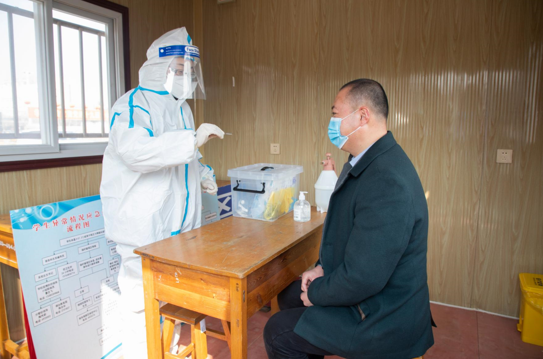 演练过程中,参演人员模拟了发现学生异常情况时的应急处置程序,认真做好入校审核、体温测量、症状检测、近期旅居史和接触史问询和排查、信息登记报告、留观转诊、环境消毒、应急隔离等各项应急处置措施。