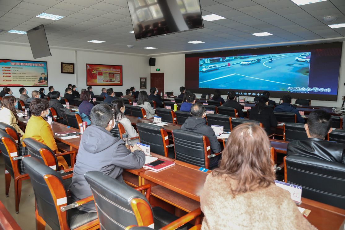 耿建敏结合学校安全工作重点讲了三点意见。一是站位要高,认识要深,切实增强做好学校安全工作的使命感、紧迫感。必须要牢固树立抓安全就是抓稳定,抓安全就是抓长远的思想,把安全工作放在学校工作更加突出的位置,以对党和国家、对社会、对师生极端负责的态度,切实做好学校安全管理工作。二是重点要明,思路要清,坚决守牢学校事业发展的安全线、稳定线。全力做好疫情防控工作,认真做好外市返校师生的摸排检测,对学生实行全封闭管理,严格把控好学校大门,同时加强对学生的防疫教育和思想工作,提高学生的防护意识。三是措施要严,责任要实,确保全年安全工作任务高效部署、有效落实。要深挖细查堵塞漏洞,切实织密校园安全防护网,建立健全长效机制,有效防范校园安全风险,坚决遏制校园安全事故,为学校改革发展事业提供坚实的安全保障。