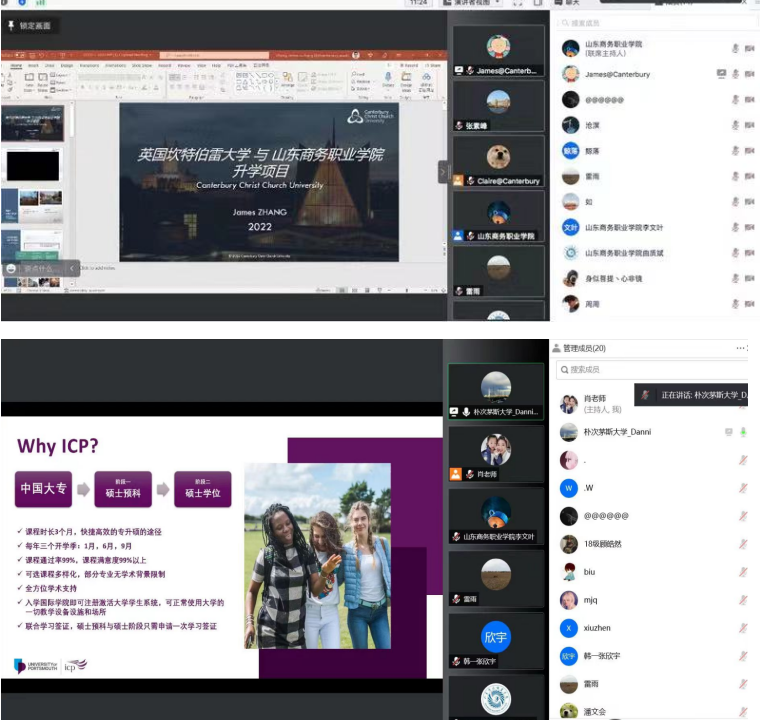 本次活动共筛选出英国、西班牙、芬兰、韩国、新加坡、日本等6个国家8所海外合作高校的10个专升本、专升硕项目,分5场宣讲会,每晚19:00-20:30通过腾讯会议线上形式,全面介绍了当前出国留学的形势、人才政策及各项目的具体申请条件、申请流程、项目奖学金政策等内容,并邀请海外高校教师和留学生线上与学生和家长进行交流和答疑,增进学生和家长对海外留学的认识和了解。活动开展以来,收到众多家长和学生的关注和咨询,同学们纷纷表示宣讲会很及时,希望有机会能去国外体验不同的学习和生活方式。