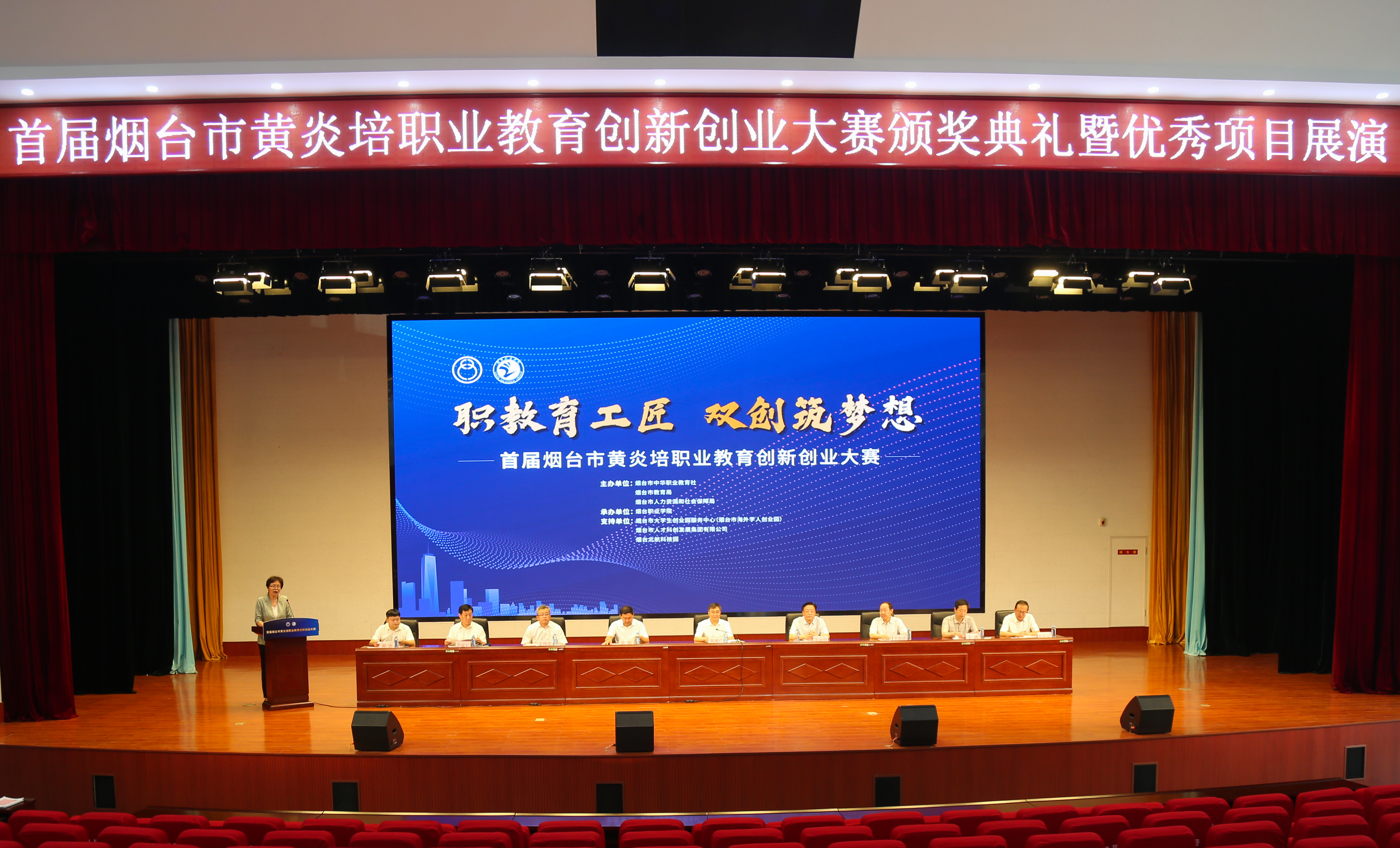 本站讯 7月15日,首届烟台市黄炎培职业教育创新创业大赛颁奖典礼暨优秀项目展演在烟台职业学院隆重举行,校领导张越代表学校出席会议,创新创业指导中心负责人和获奖团队参加会议。