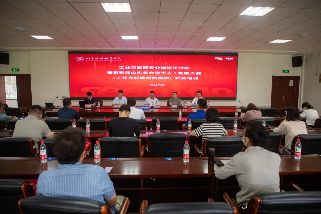 本站讯 7月29日上午,工业互联网专业建设研讨会暨第五届山东省大学生人工智能大赛(工业互联网创新赛项)师资培训班开班仪式在我校学习中心举行。学校副校长张云生出席开班仪式,信息工程学院、新道科技股份有限公司相关负责人及30余位参训学员参加仪式。