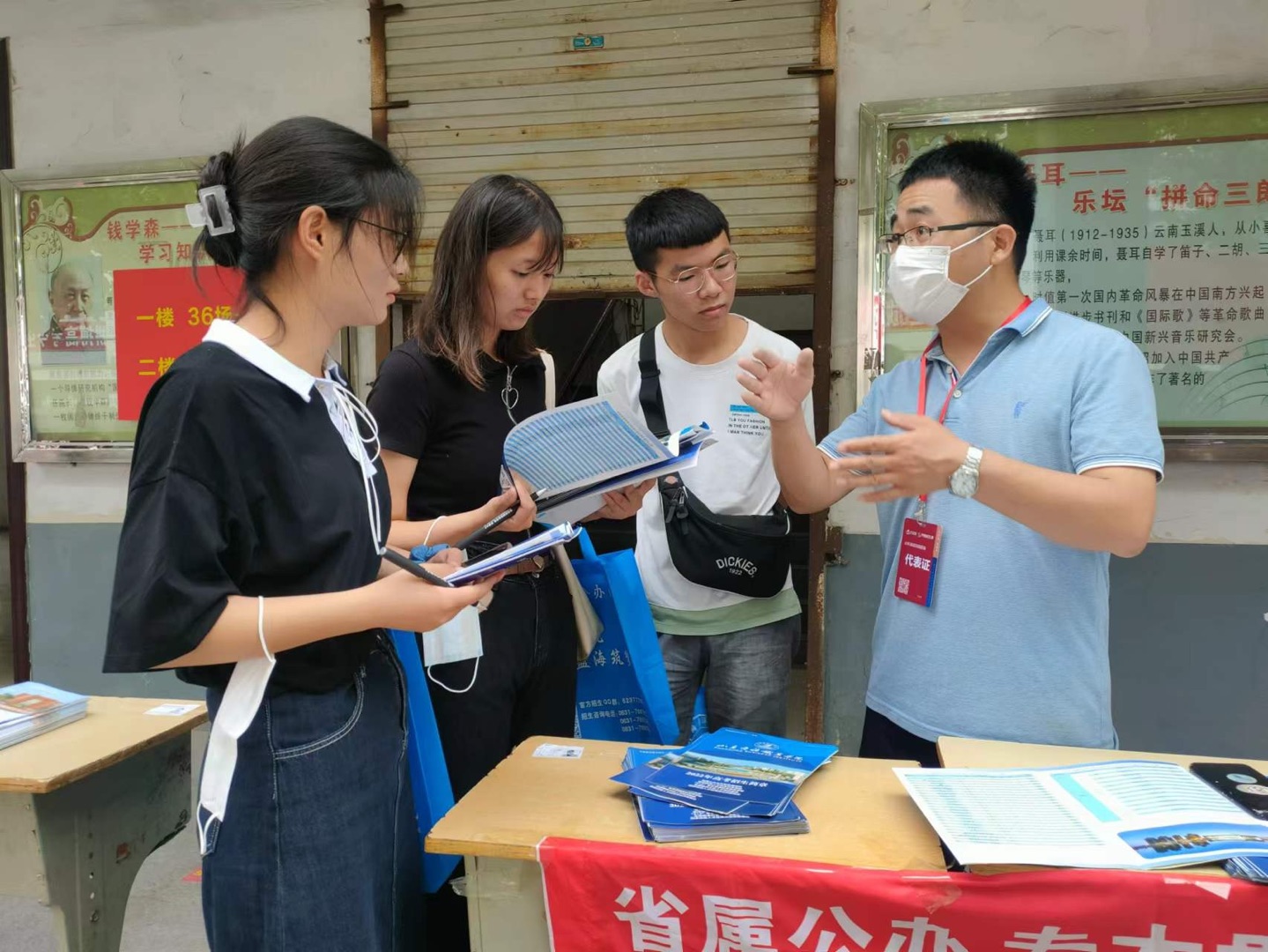 自今年招生工作启动以来,学校领导高度重视,多次召开专题会议研究部署招生工作,招生工作处与各部门、各学院密切配合,组合“出拳”。为帮助考生顺利完成志愿填报,采取线上线下多种方式开展政策宣讲和专业指导。一方面,我校组织选派干部教师走进校园开展招生宣讲和咨询,为家长和考生现场答疑,宣传覆盖家长考生2.3万人次;另一方面,创新宣传模式,推进线上媒体融合,利用学校招生信息网对各二级学院和其招生专业展开宣传,并及时通过电话为考生和家长提供专业化咨询服务。