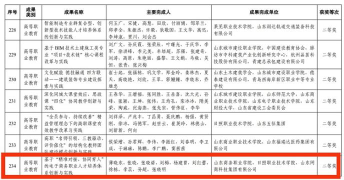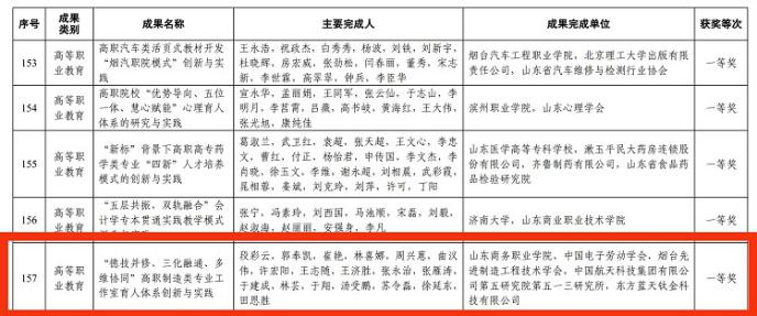 本站讯 近日,山东省教育厅公布了2022年省教学成果奖(职业教育类)获奖名单,我校荣获职业教育教学成果奖4项,其中一等奖3项、二等奖1项。