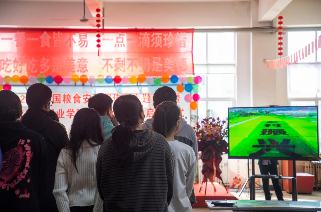 在场师生首先观看了《保障粮食供给 端牢中国饭碗》的粮食安全宣传片,由学生代表向全校师生发出“节约粮食,保障安全”的倡议。