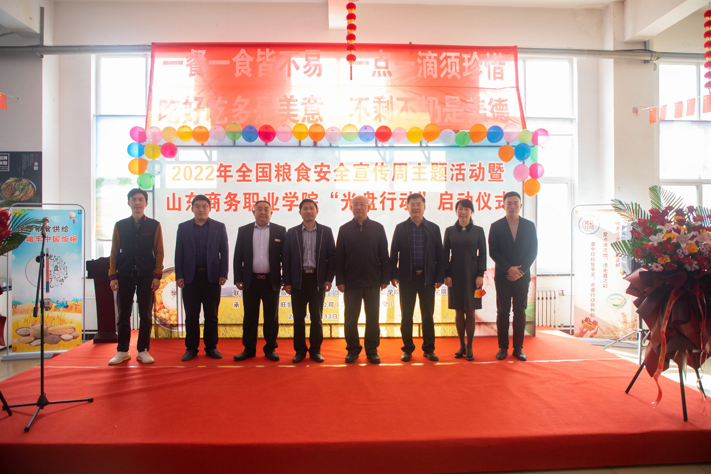本站讯 10月13日上午,我校2022年粮食安全宣传周主题活动暨“光盘行动”启动仪式在第二餐厅三楼食堂举行,学校副校长陶传蔚出席活动,后勤服务处、学生工作处(团委)、工会、粮油食品学院、艺术设计学院相关负责人、食堂监督管理委员会委员和师生代表参加本次活动。