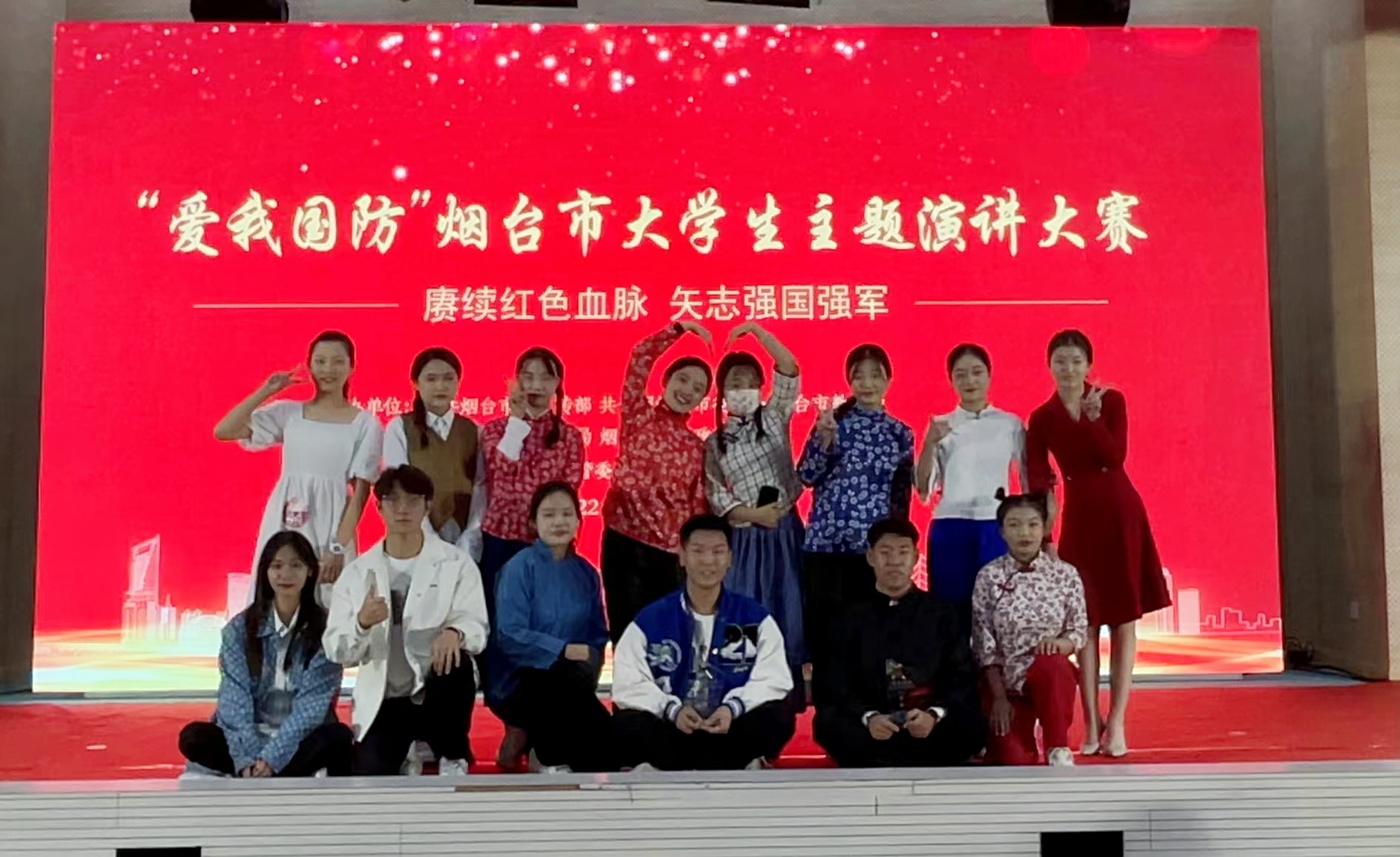 本站讯 近日,“爱我国防”烟台市大学生主题演讲大赛在烟台高新区举行。我校选派的隋松昊和肖雨桐两位同学的作品《等待》摘得桂冠,宋明悦、郝新颖、宋晓琦、李婉晴、王秀琪、刘晓蕊、季春意、姚奕囡、刘月丹等同学的作品《跨越时空的对话》获得二等奖。