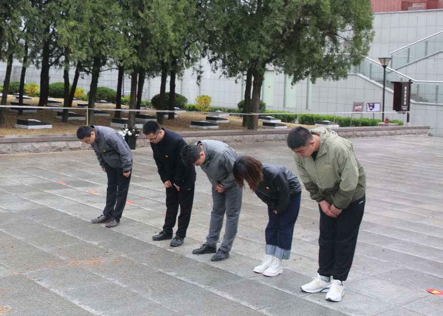 走出纪念馆,天下起了蒙蒙细雨,青松翠柏挺拔肃立,墓地正中是粟裕将军骨灰撒放处,其后是烈士英名塔,塔身镌刻着烈士名录,墓区内掩埋着华东野战军在孟良崮战役中牺牲的2865名烈士的忠骨,其中,墓碑上有名字的只有103座,其他2700多座都是无名烈士墓。师生代表怀着无比崇敬的心情向粟裕将军和烈士们敬献花束并三鞠躬,1万余名学生在线缅怀革命烈士,“这次战役充分反映了我军英勇顽强,不怕牺牲的精神,先辈们,请你们放心,我们一定努力学习,奉献祖国,做有担当的新时代青年。”文化旅游学院2021级学生马晨星在线缅怀后感动地说道。