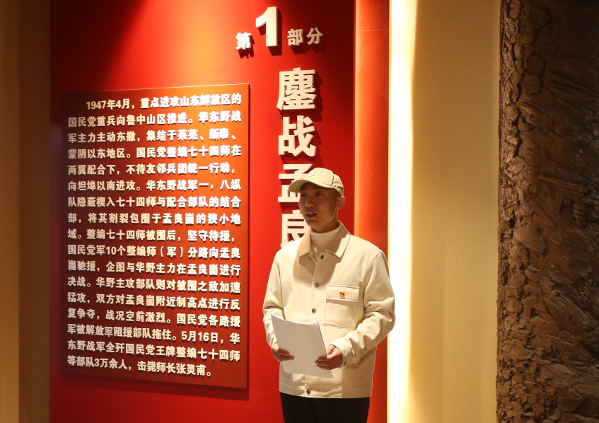 本站讯 4月1日,学校师生代表走进山东蒙阴孟良崮战役纪念馆,开展了一场别开生面的“云团课”,全校1万余名学生通过视频APP在线参观了孟良崮战役纪念馆,隔空感受了孟良崮战役的壮怀激烈。学生工作处(团委)、思政理论课教学部、智能制造学院教师和学生代表现场参加了活动。