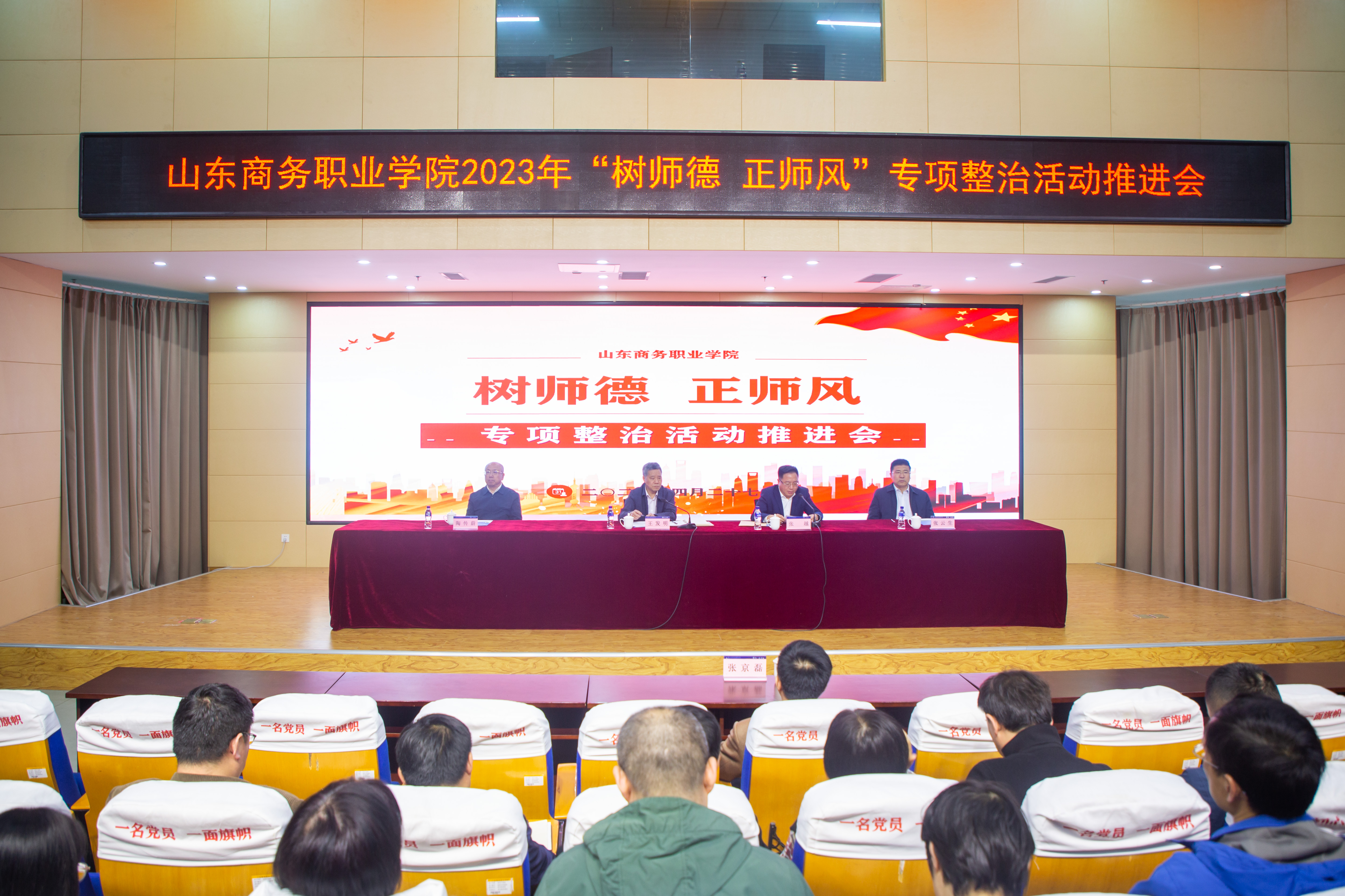 本站讯 4月27日下午,我校召开“树师德、正师风”专项整治活动推进会,深入贯彻党的二十大精神,全面落实教育部、省教育厅关于加强和改进新时代师德师风建设的意见,部署学校全面师德师风专项整治工作任务。学校党委成员、师德师风专项整治活动专班成员、副科级以上干部及教师代表参加会议。
