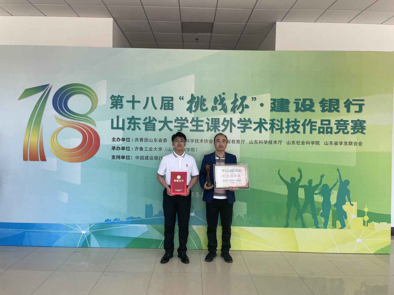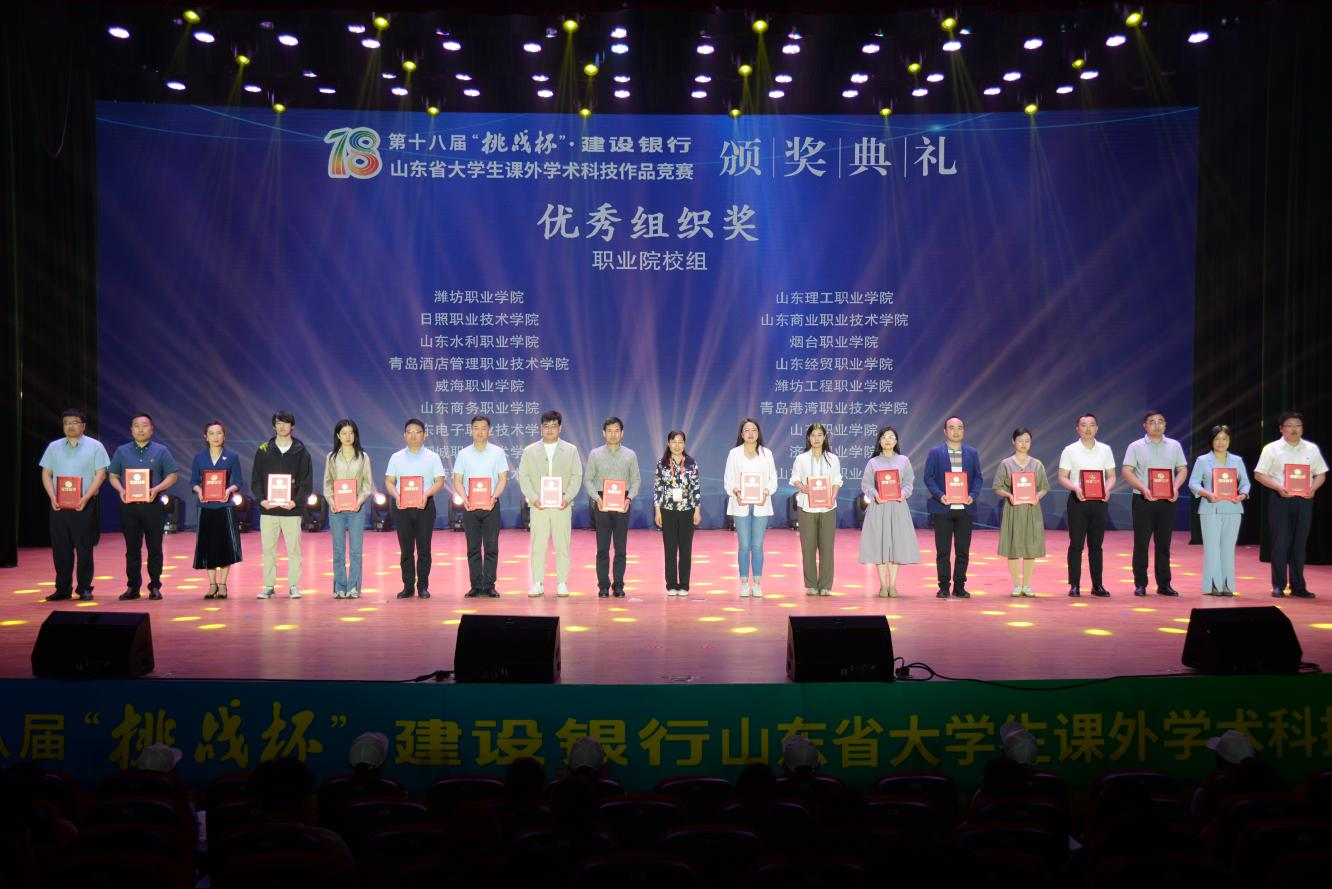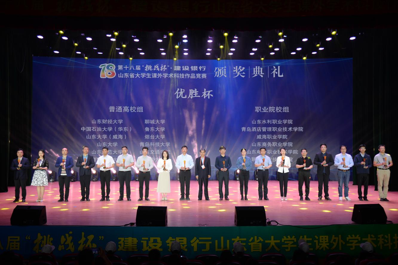 本站讯 5月22日上午,第十八届“挑战杯”·建设银行山东省大学生课外学术科技作品竞赛闭幕式暨颁奖典礼在齐鲁工业大学(山东省科学院)长清校区艺体中心礼堂举办。我校捧得“优胜杯”,1件作品获特等奖,学校获优秀组织奖。