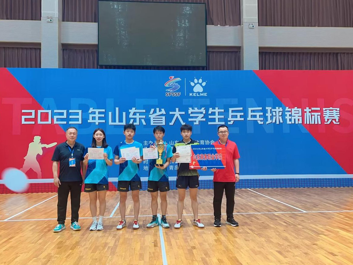 本站讯 6月3日—8日,2023年山东省大学生乒乓球锦标赛在青岛市黄岛区青岛职业技术学院体育馆举行。我校共派出4名运动员参加乙组比赛,经过激烈角逐,我校荣获团体总分一等奖,并取得男子团体第七名、混双第三名、女子单打第四名、男子单打第六名的好成绩。