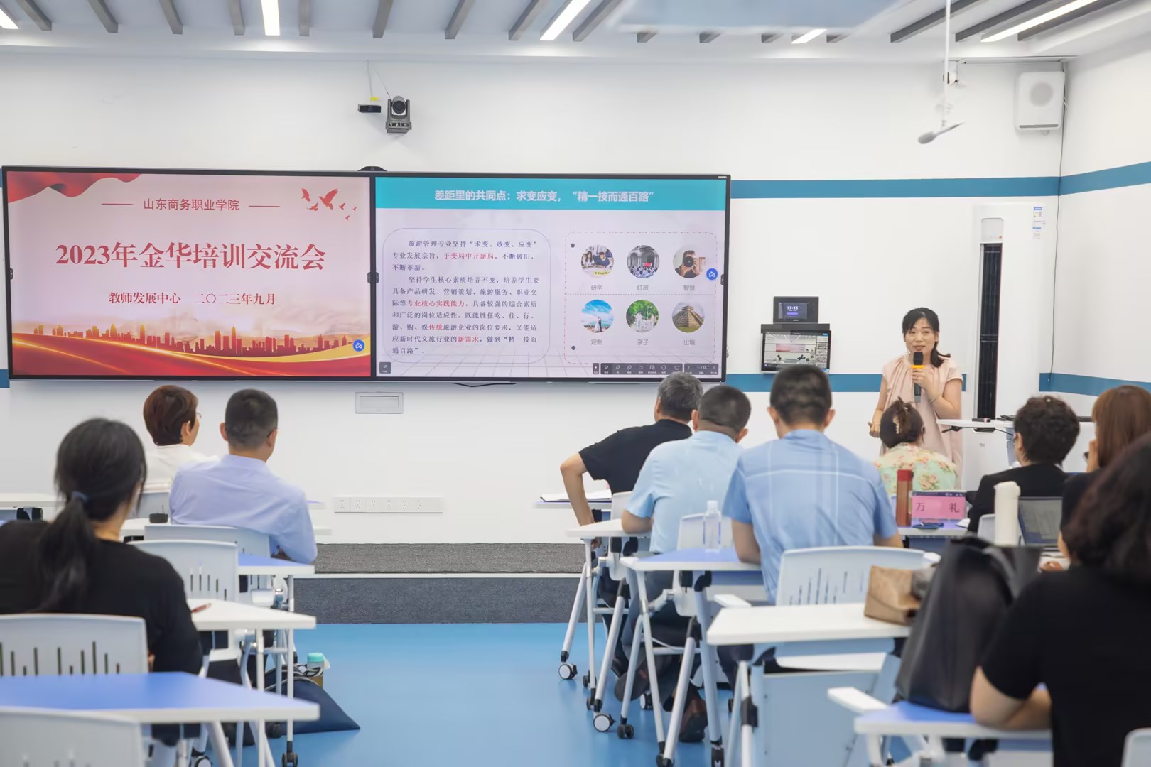 会上,21位参训代表从培训心得、培训落实和培训建议三个方面做了精彩分享。参训教师纷纷表示,此次“走出去”培训收获颇丰,学习了金华职业技术学院在双高建设、质量诊改、产教融合、教学大赛等方面的成功经验,特别是在深度领会解读职教政策、项目化思维抓改革、狠抓落实善凝练等方面收获颇丰,拓展了职教视野,更新了职教理念。把学到的理念经验“带回来”,各教学院部组织了本部门培训交流会,把培训成果辐射到每位教师。更可贵的是,参训教师分享了“用起来”的具体措施,在专业规划、项目申报、课程重构、教学备赛等方面已初见成效。
