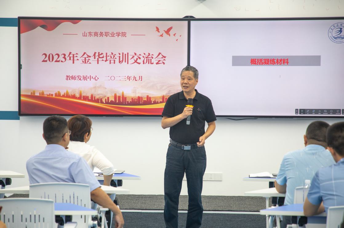 本站讯 为进一步提高培训成效,将“走出去”“带回来”“用起来”有效结合,9月14日下午,学校在教师智慧学习中心召开2023年专业带头人、公共课负责人能力提升专题培训交流会,党委副书记、校长王发明,各教学院部负责人、分管教师发展工作副院长(副主任)、专业带头人、专业负责人和公共课负责人,教师发展中心和办公室有关人员参加了交流会。会议由教师发展中心负责人主持。