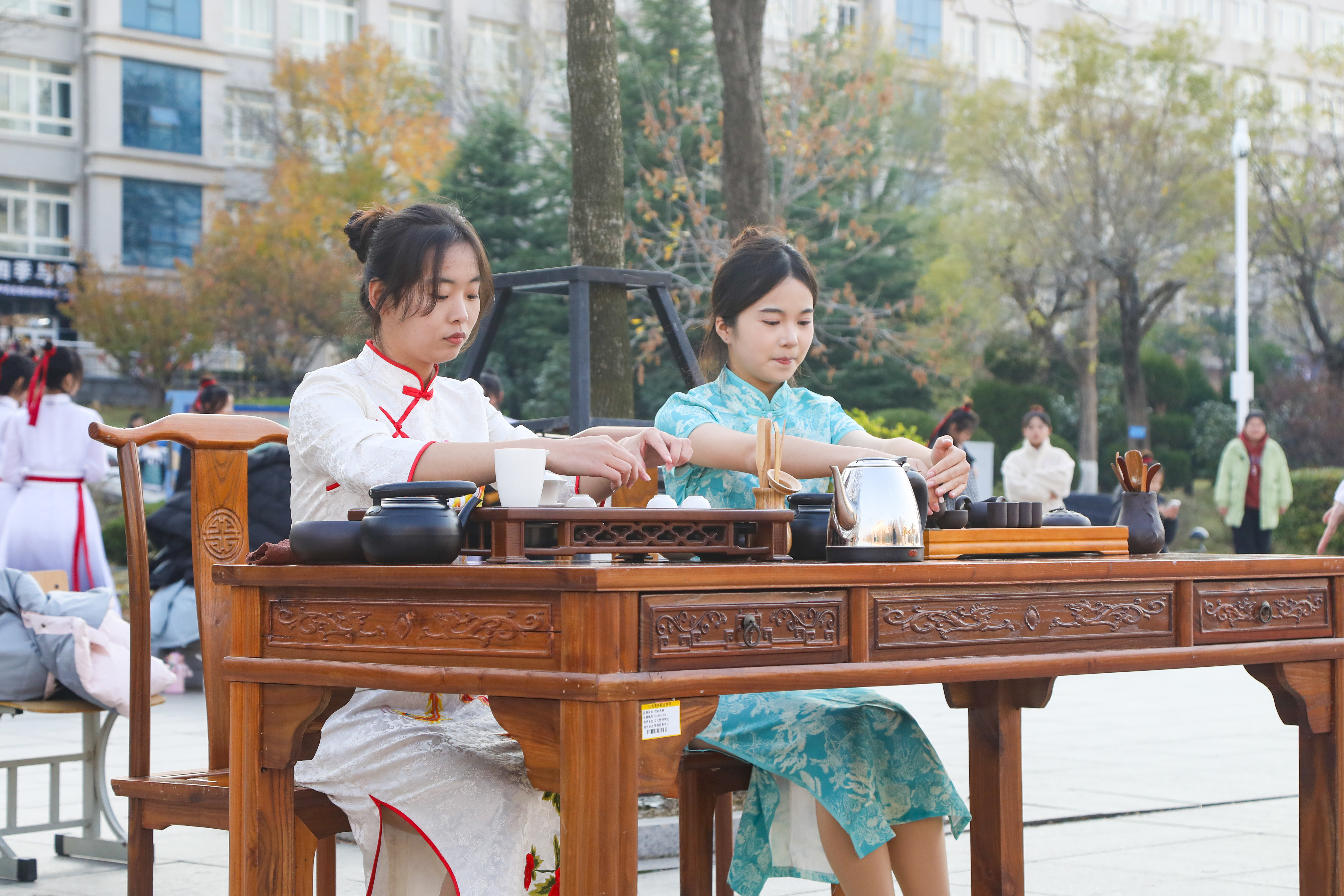 本站讯 文化承传统,国风进校园。11月14日下午,我校于中心大道举行第七届传统文化节中华优秀传统文化展示活动。学校副校长陶传蔚莅临现场并逐一观看了传统文化展示,学生工作处(团委)、继续教育学院、基础教学部负责人及师生代表参与了此次活动。
