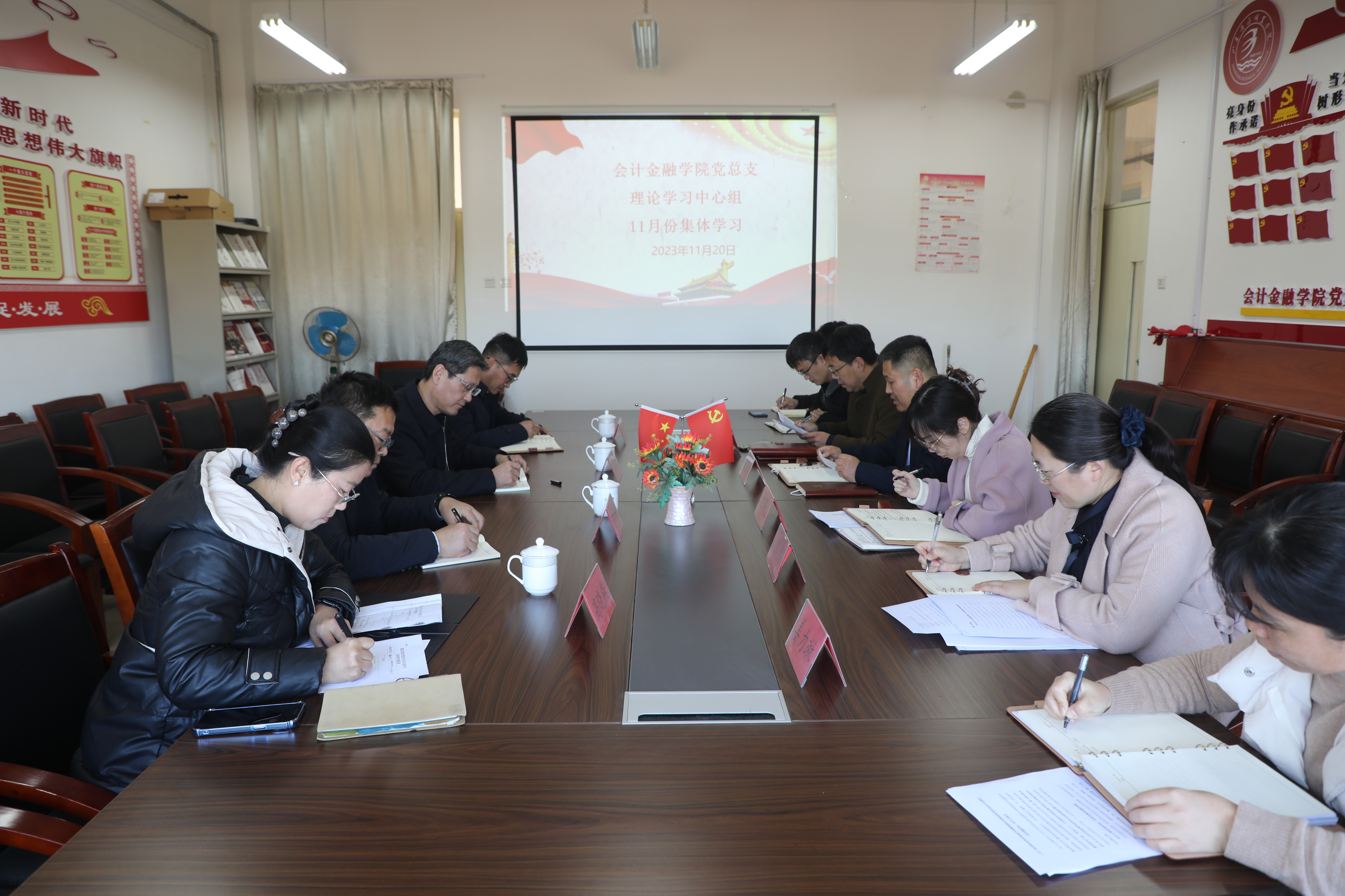本站讯 11月20日下午,会计金融学院党总支在一号教学楼A301会议室召开11月份党总支理论学习中心组学习会议。学校党委书记孙云茂列席旁听并点评。学校旁听工作组成员孙芹宝、赵永刚、高晓燕列席会议。会计金融学院党总支领导班子成员参加会议。会计金融学院党总支书记宫国学主持会议。