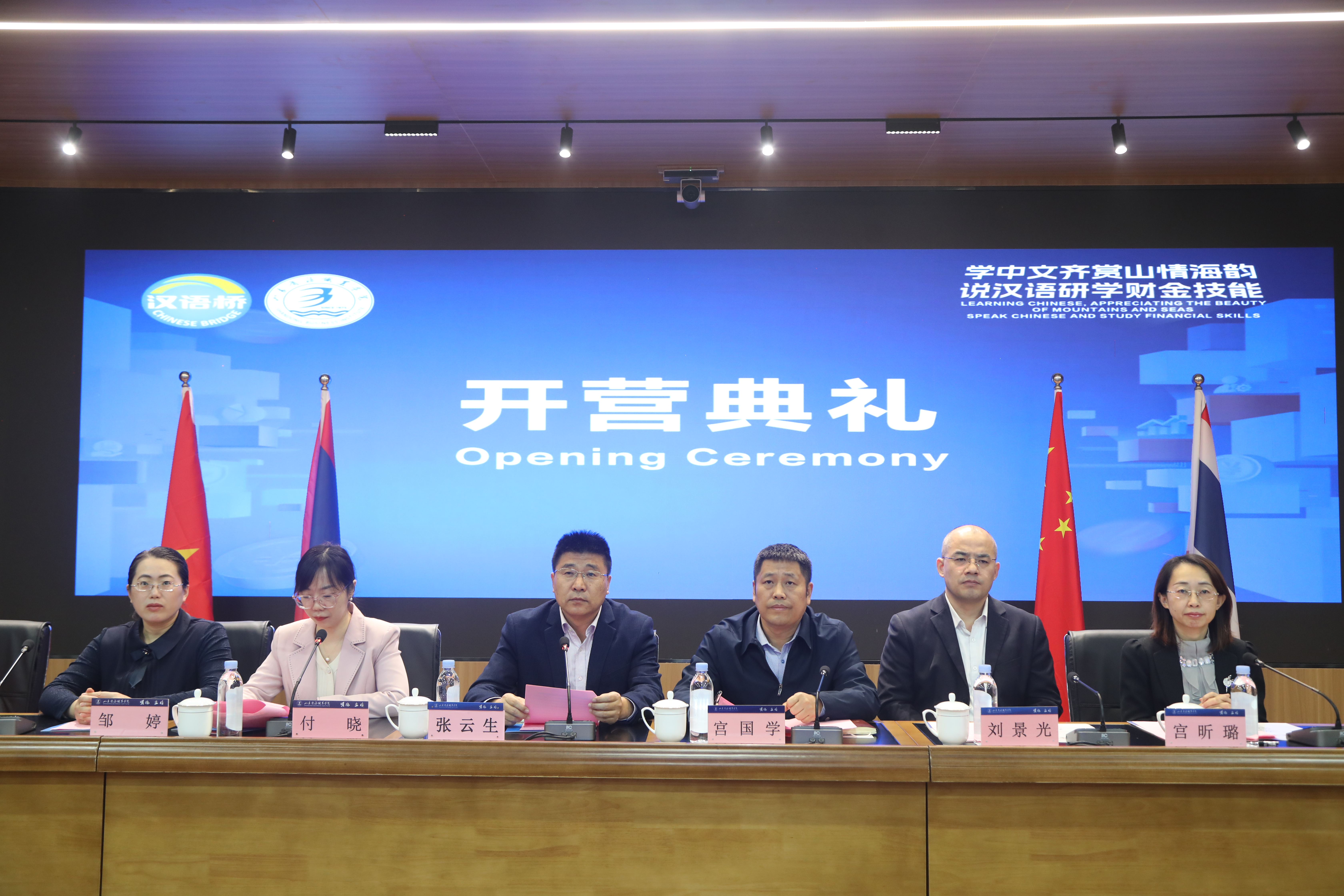 本站讯 12月5日上午,由教育部中外语言交流合作中心主办、我校承办的“学中文齐赏山情海韵,说汉语研学财金技能”2023年“汉语桥”线上团组交流项目正式开营。学校副校长张云生、老挝乌多姆赛中老友谊学校校长吴洛荷、老挝纳萨学院校长孔喜等有关领导和嘉宾出席会议并致辞。开营仪式由会计金融学院院长付晓主持,来自泰国、越南、老挝、日本等国家的100多名营员共同参加了云端开营仪式。