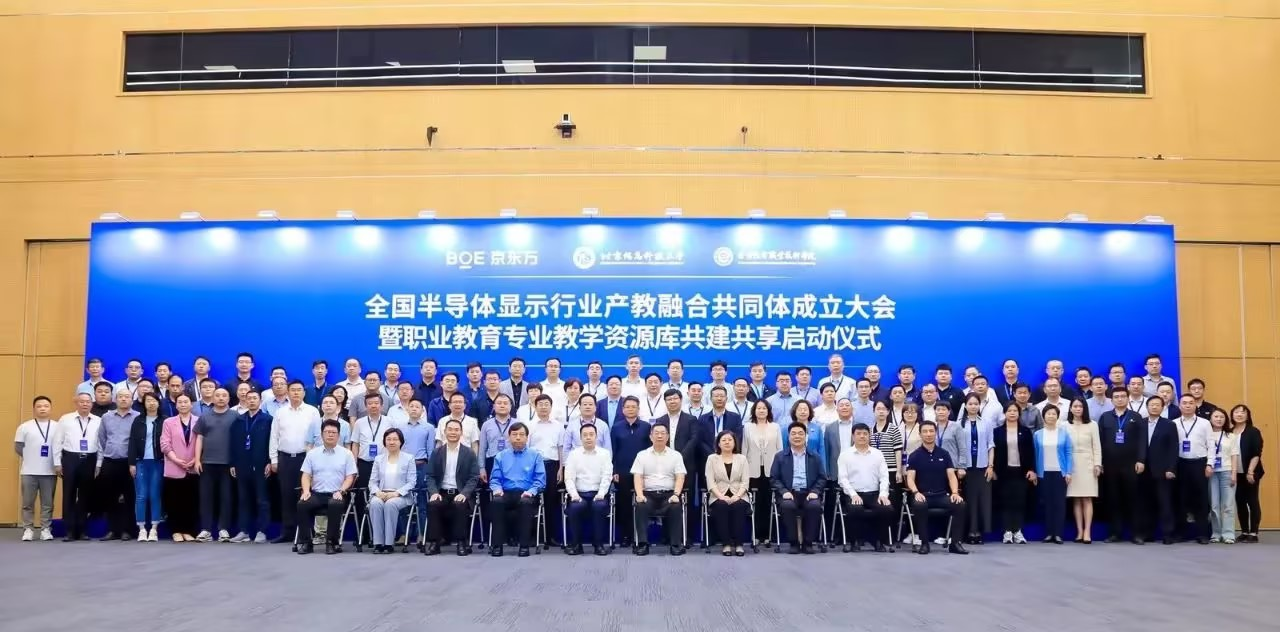 据悉,全国半导体显示行业产教融合共同体是在工信部教育与考试中心、机械工业教育发展中心、甘肃省教育厅、甘肃省工信厅指导下组建成立,集结了包括行业组织、学校、科研机构、上下游企业等100余家成员单位。会上宣读了《全国半导体显示行业产教融合共同体工作计划》,两位专家分别作了《现代化产业体系建设与复合型技术技能人才培养》和《职业教育专业资源库建设的新动态新策略》的专题报告。会后,与会领导、嘉宾进行了合影留念,并参观了京东方CTO科技技术展厅。