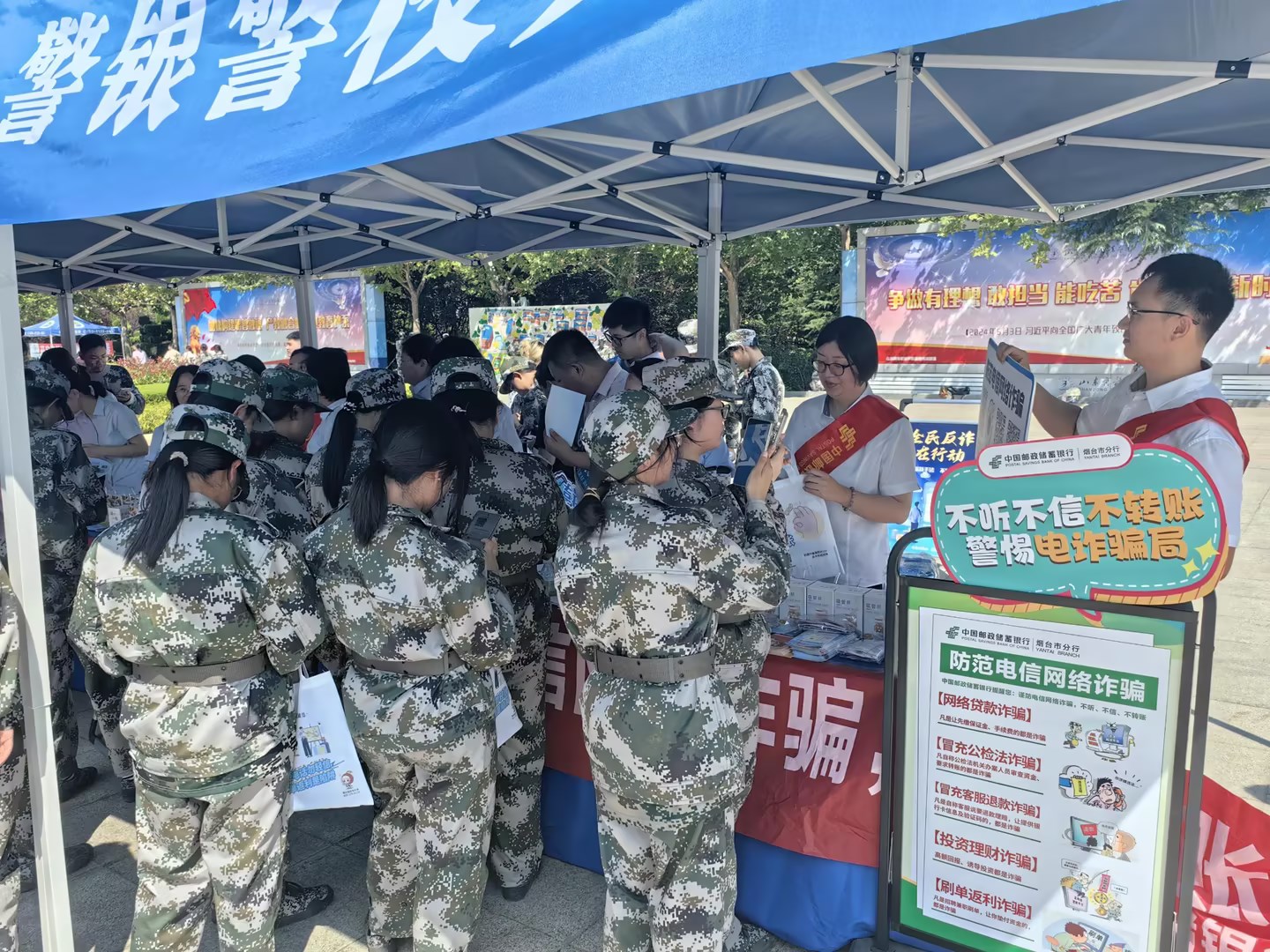 银行工作人员结合实际案例讲解,提醒学生学习金融知识,时刻绷紧反诈防骗之弦,掌握反诈技能,不给不法分子可乘之机。现场分发了金融知识宣传资料,整个宣传过程新生热情高涨。