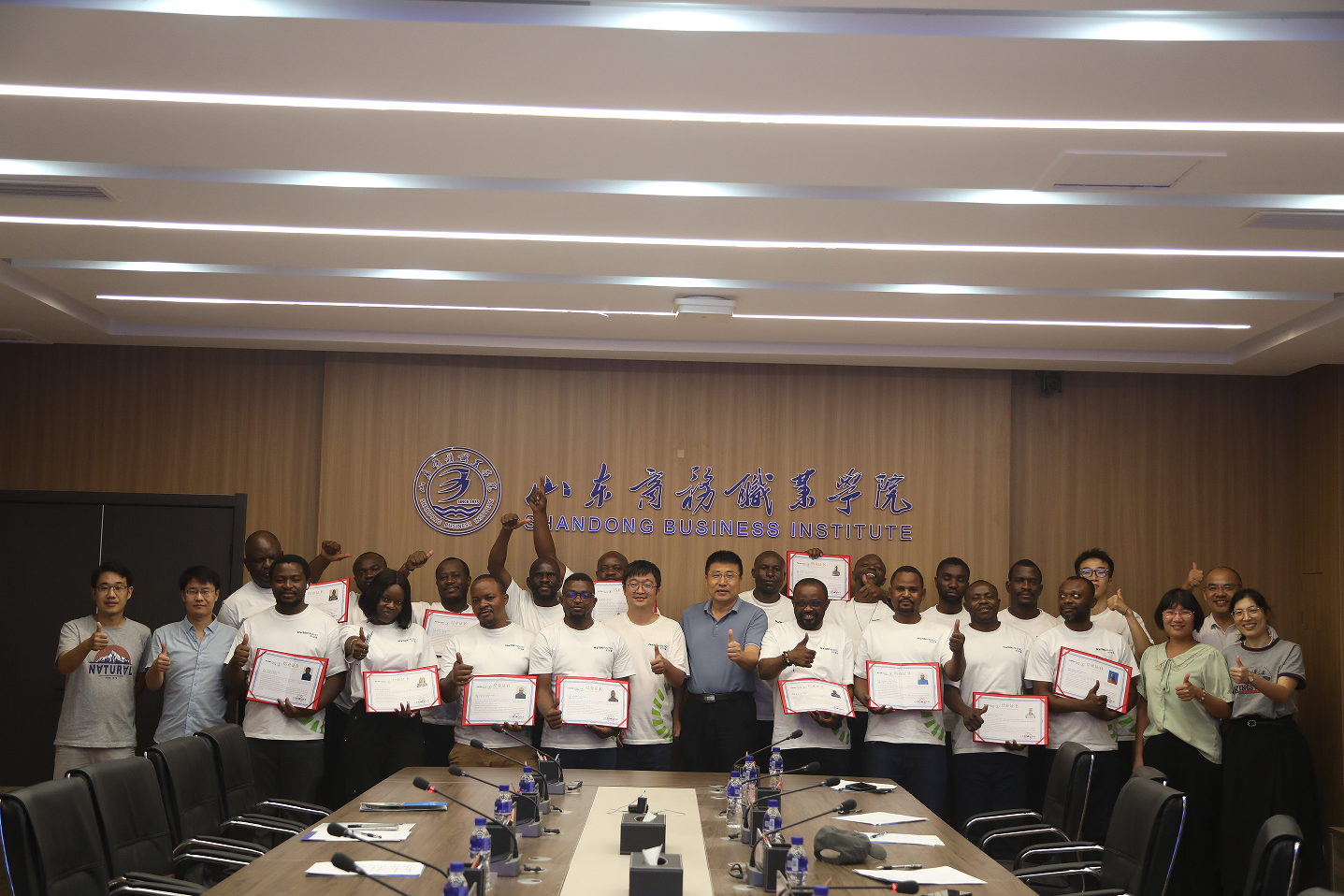 在学员代表发言环节,来自拉米卡和科米卡的学员代表依次上台。学员代表多多表示,虽然此次培训只有短短一周,但是培训内容丰富,能够如此近距离接触并体验中国先进的现场管理技术对他而言是十分宝贵的经历。学员代表穆当巴表示此次培训让他感受到中国文化的魅力和中国科技的发展,通过实地走访企业,在实践中感受生产管理,比线上培训更加生动真实,收获很多。之后,与会领导逐一为学员们颁发结业证书,并合影留念。