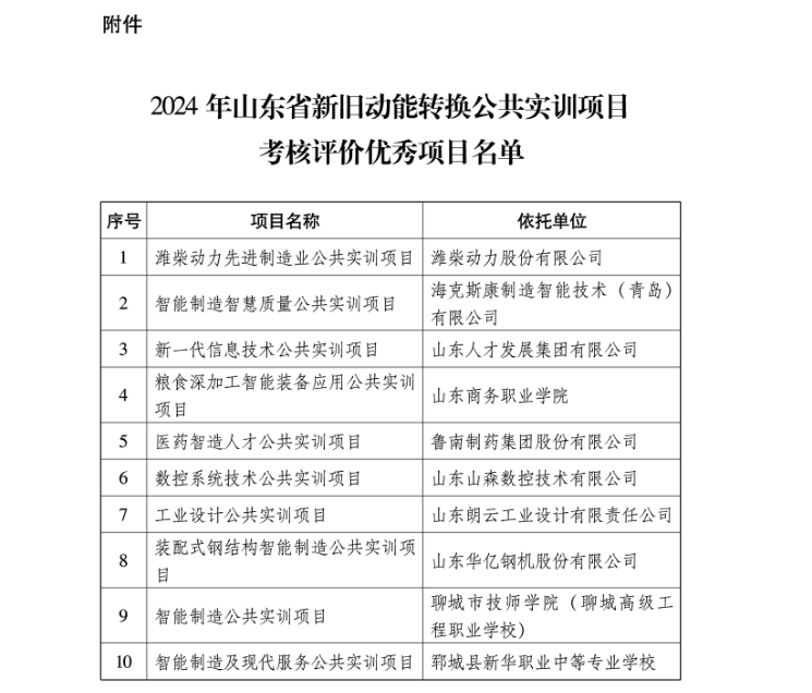 本站讯 近日,山东省工业和信息化厅公示了2024年山东省新旧动能转换公共实训项目考核评价优秀项目名单,我校2023年建设的“粮食深加工智能装备应用公共实训基地项目”,获得2024年山东省新旧动能转换公共实训基地考核“优秀”。从山东省工业和信息化厅、烟台市工业和信息化局获悉,2017年至2023年全省累计建设新旧动能转换公共实训基地项目240个,烟台市累计建设21个。本次考核我校从全市、全省范围内脱颖而出,是烟台市唯一一个获优项目,山东省10个获优项目之一,彰显了我校实训基地建设能力与水平,为我校产教融合高质量、校企合作高水平夯实了基础。根据《山东省新旧动能转换公共实训项目建设及奖补资金管理实施细则》,预计获25万元建设奖补。