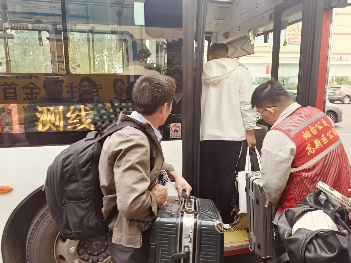 烟台最美公交线路17路,极具烟台特色的“城市名片”,在这个国庆假期再次成为城市流动的风景线。面对广大市民及游客公共交通出行热情,我校志愿者们坚守在公交站牌、火车站等各个重要点位,引导乘客有序排队、文明候车,提高车辆运行效率,同时帮助乘客搬运行李物品,轻抬婴儿车、搀扶老人,耐心为乘客提供问询指引、文明劝导、困难帮扶、旅游推广、应急保障等服务,志愿者们用一张张灿烂的笑脸、一句句温馨的提醒、一次次暖心的帮扶,全心全意为乘客排忧解难。24级网络络技术1班的李凯同学谈到:“这是我第一次参与国庆志愿服务,能利用假期参与社会实践,感觉特别有意义。虽然每天站得腿酸,但能帮助到那么多需要帮助的人,心里特别满足,这不仅是一种奉献,更是一种自我提升的过程。”