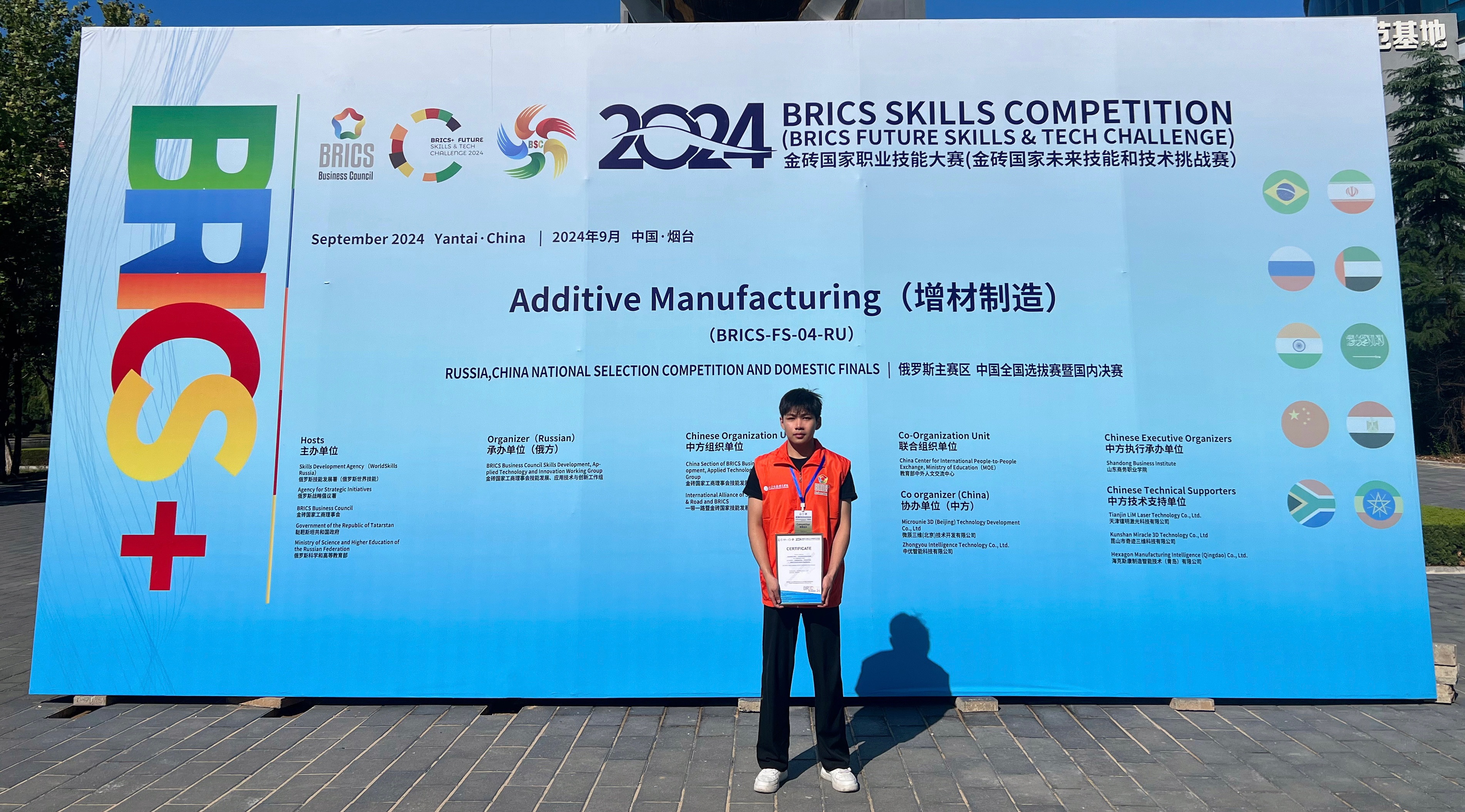 本站讯 近日,在“2024金砖国家职业技能大赛增材制造赛项全国选拔赛暨国内决赛”的舞台上,我校智能制造学院韩建旗同学荣获一等奖,并成功入围国际赛。韩建旗同学的优异表现,不仅彰显了个人的才华与努力,更展现了学校在人才培养方面的卓越成效。