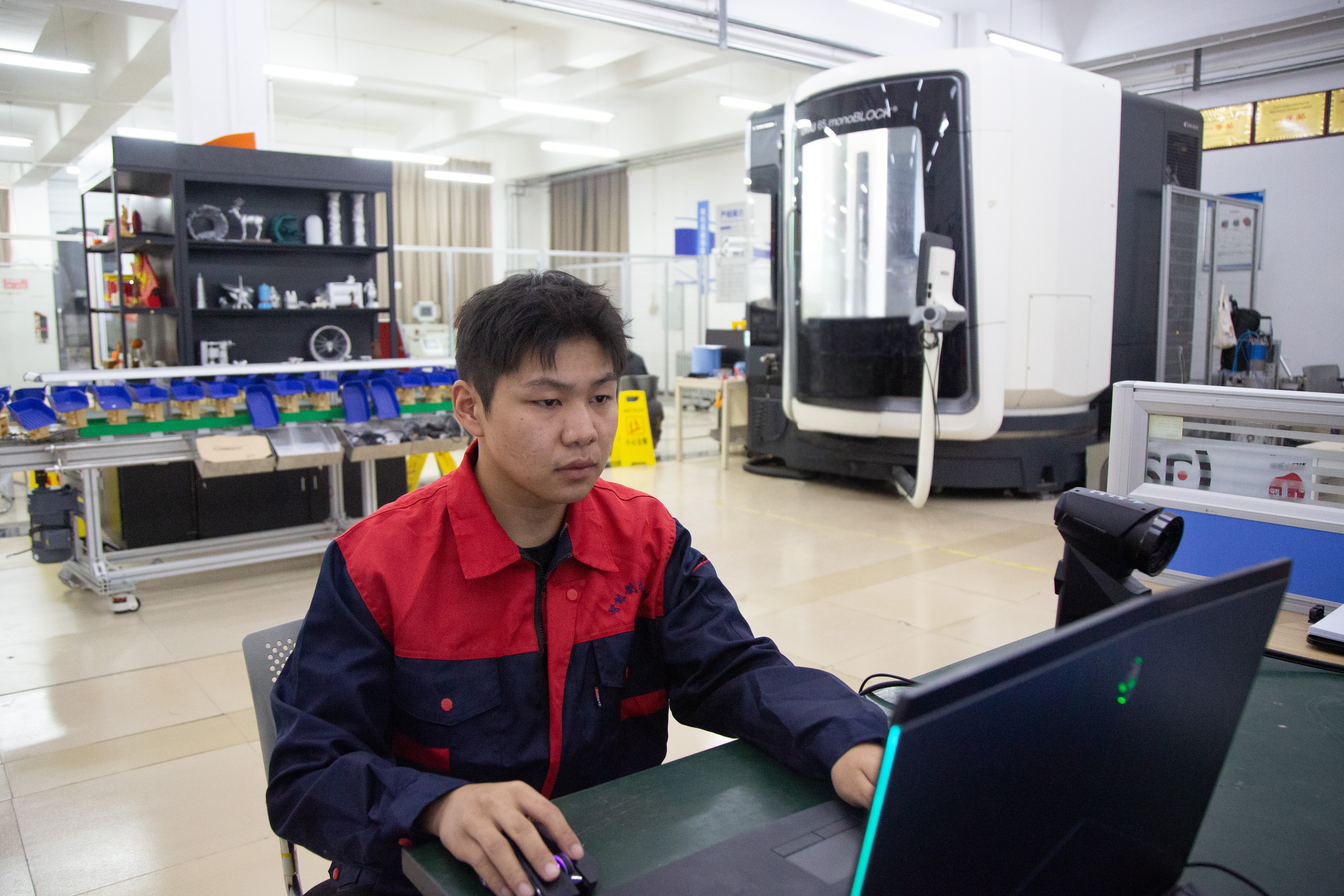 大一时,他第一时间加入了智能制造学院先进制造中心,跟随老师一起做项目、学习技能。课余时间,他自学了Geomagic Design X、中望3D设计、NX、SOLIDWORKS 、HxGN Manufacturing Suite 、Inspire 、3D打印技术、金属切削技术等各种增材和减材制造技术。